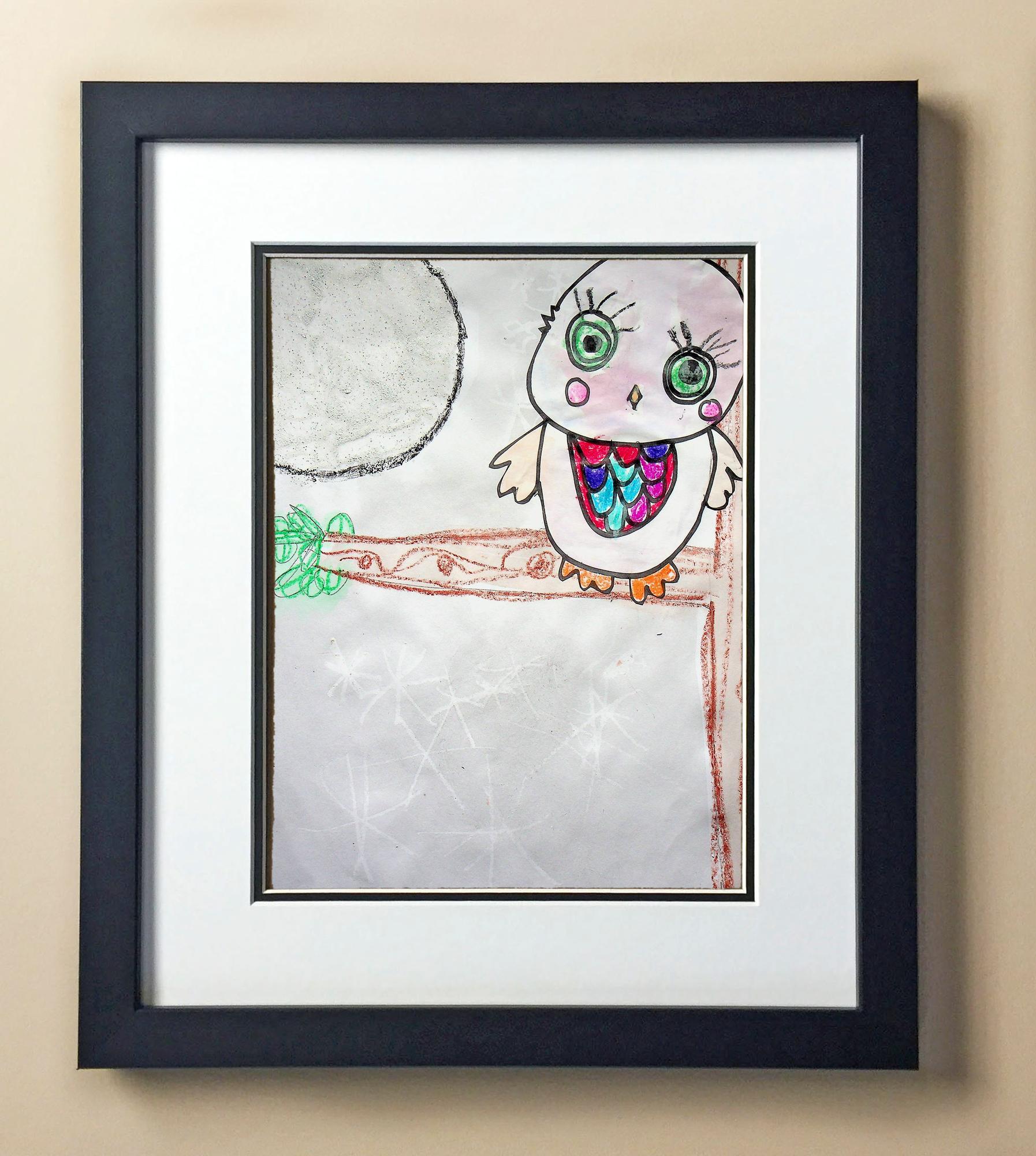 Included with the purchase is the Students Artwork, Frame, double matboard, shatter proof plexiglass, and a ready to hang backerboard with turnbuttons