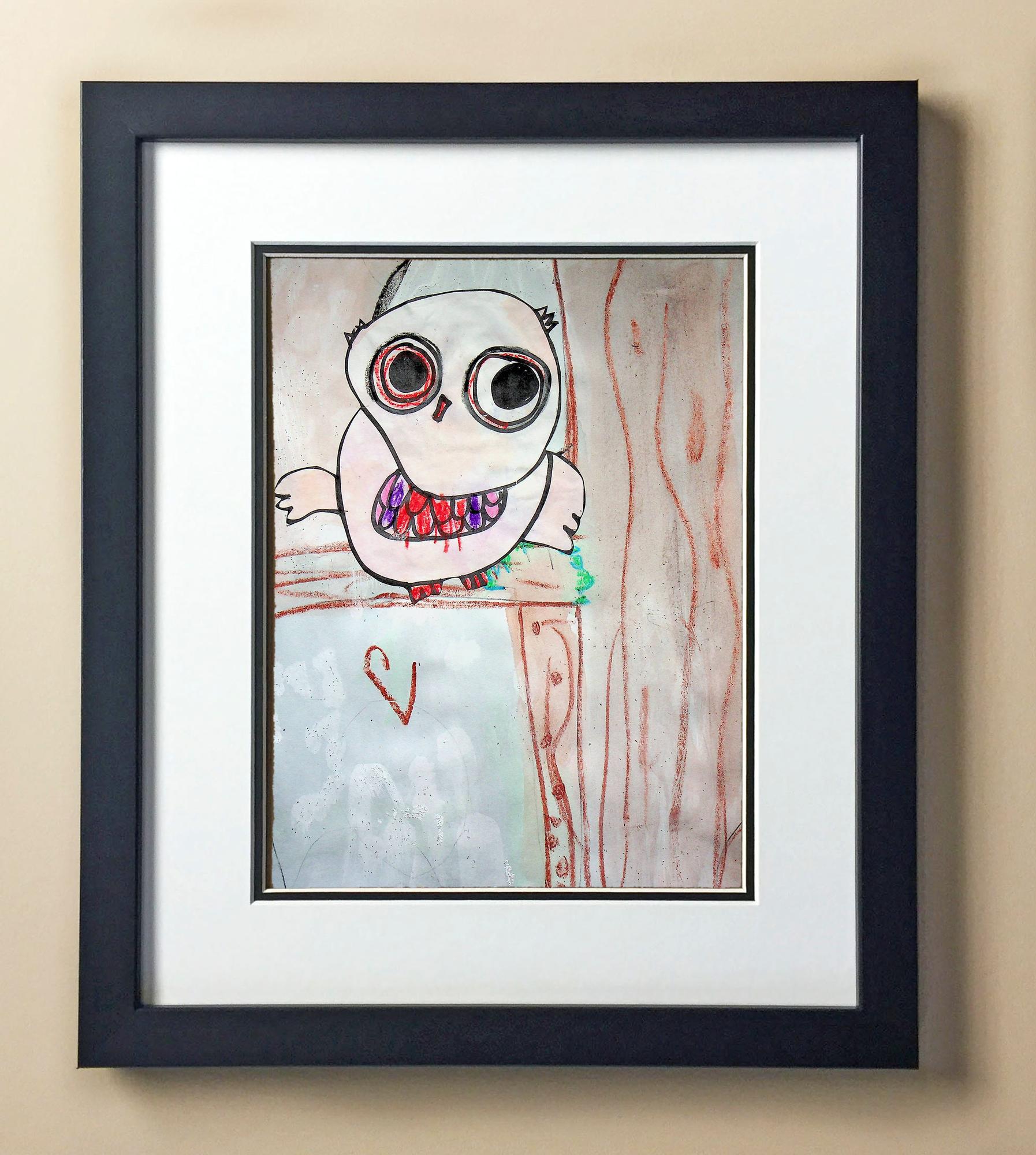 Included with the purchase is the Students Artwork, Frame, double matboard, shatter proof plexiglass, and a ready to hang backerboard with turnbuttons