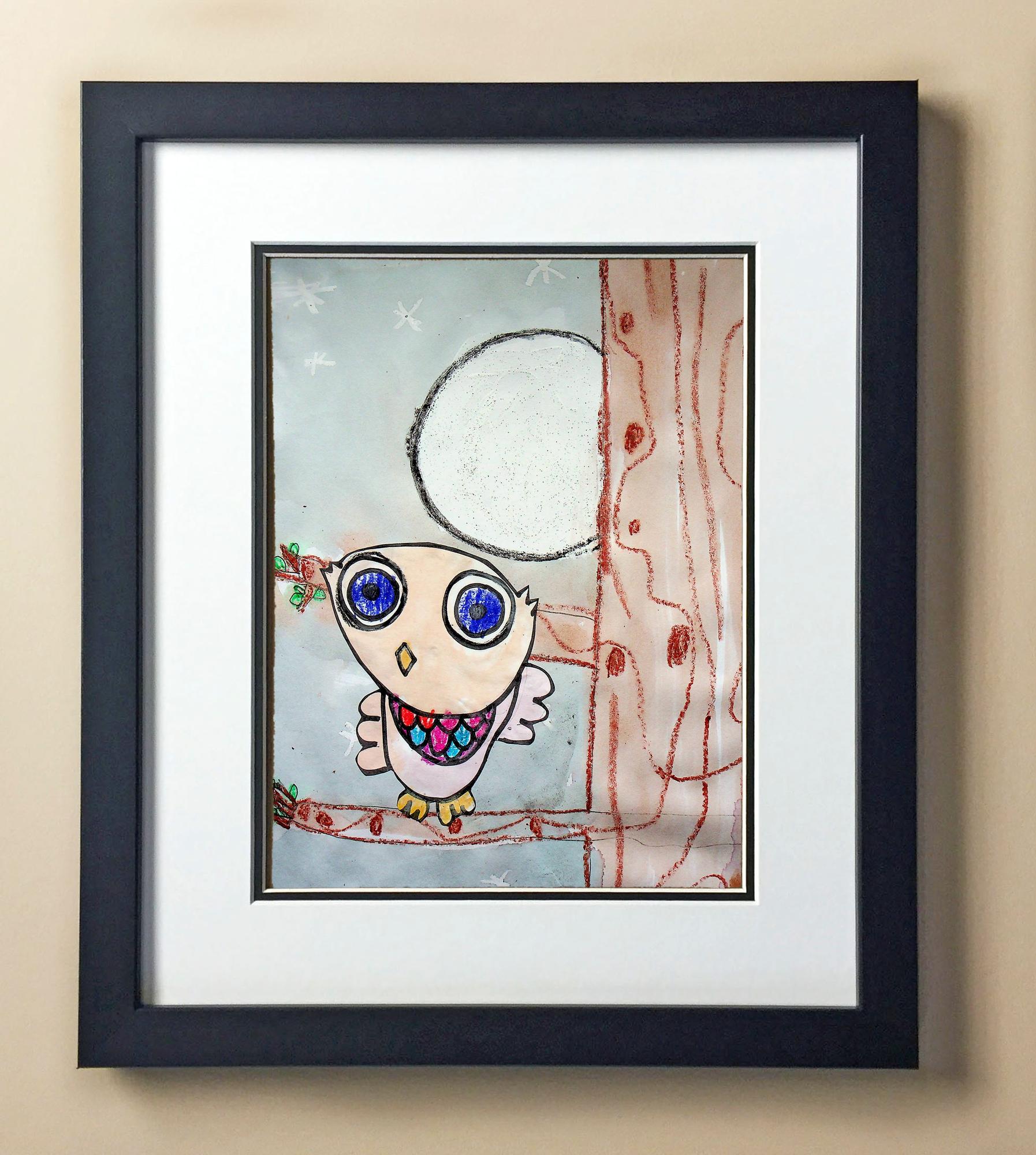 Included with the purchase is the Students Artwork, Frame, double matboard, shatter proof plexiglass, and a ready to hang backerboard with turnbuttons