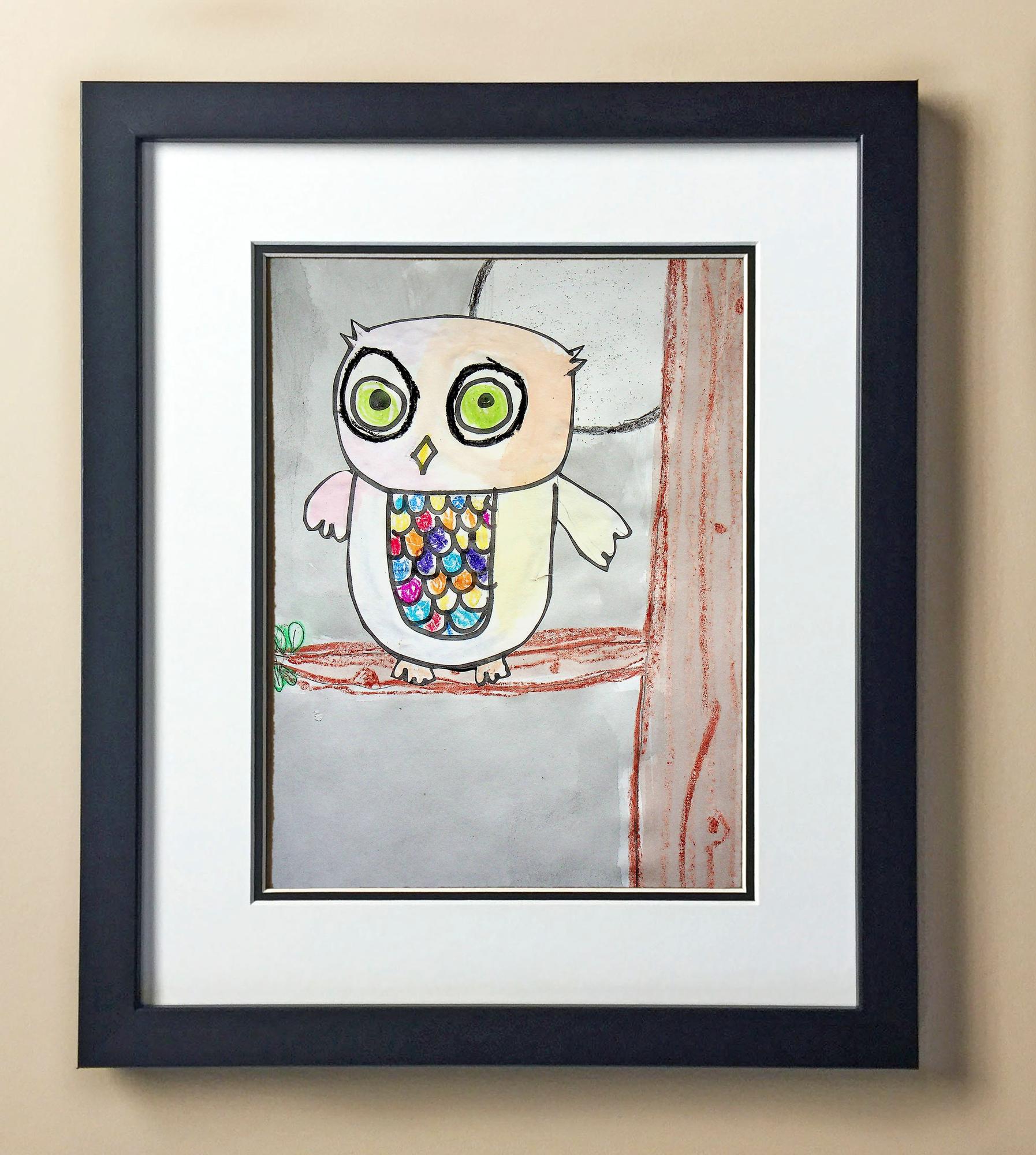 Included with the purchase is the Students Artwork, Frame, double matboard, shatter proof plexiglass, and a ready to hang backerboard with turnbuttons