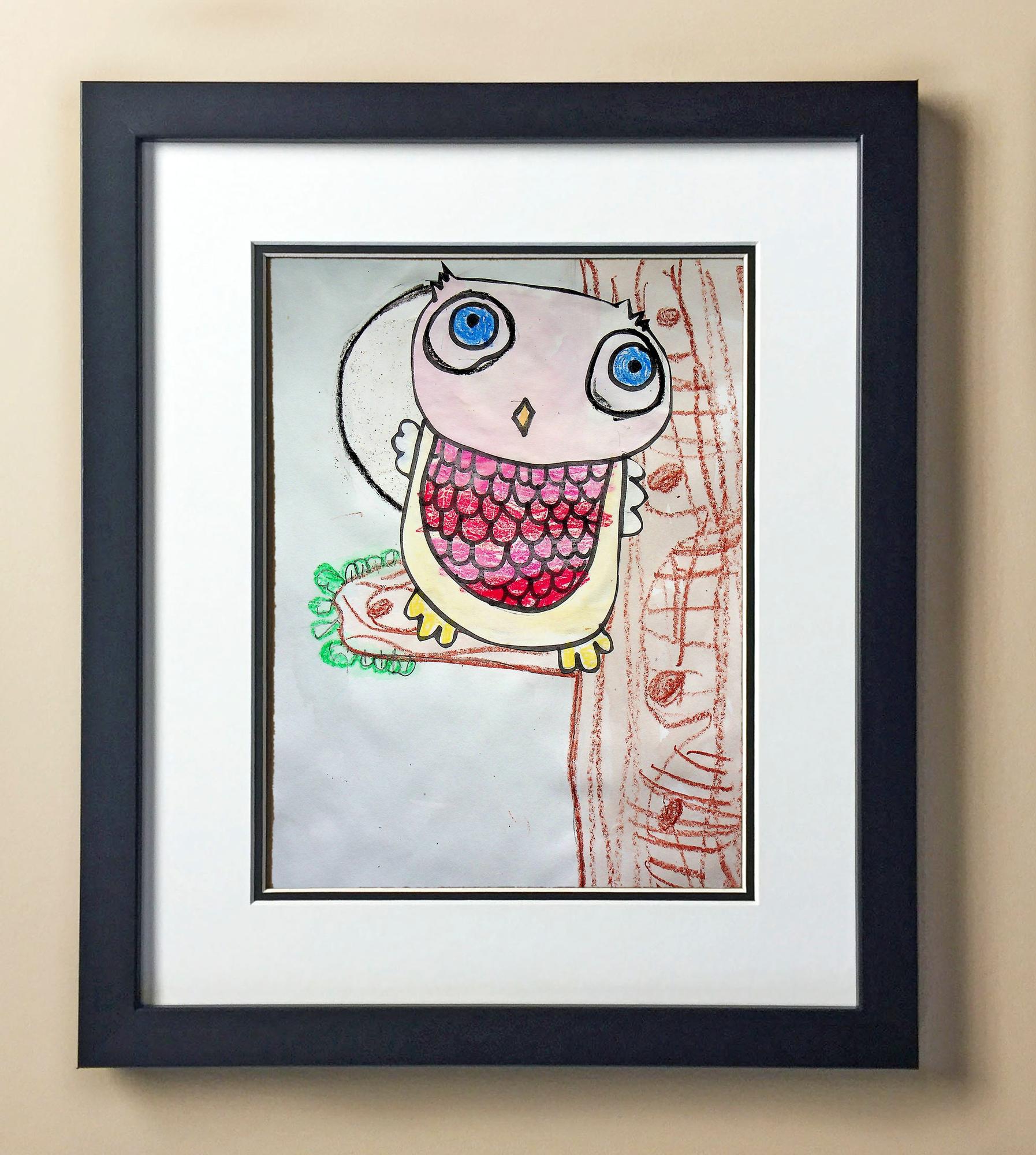 Included with the purchase is the Students Artwork, Frame, double matboard, shatter proof plexiglass, and a ready to hang backerboard with turnbuttons