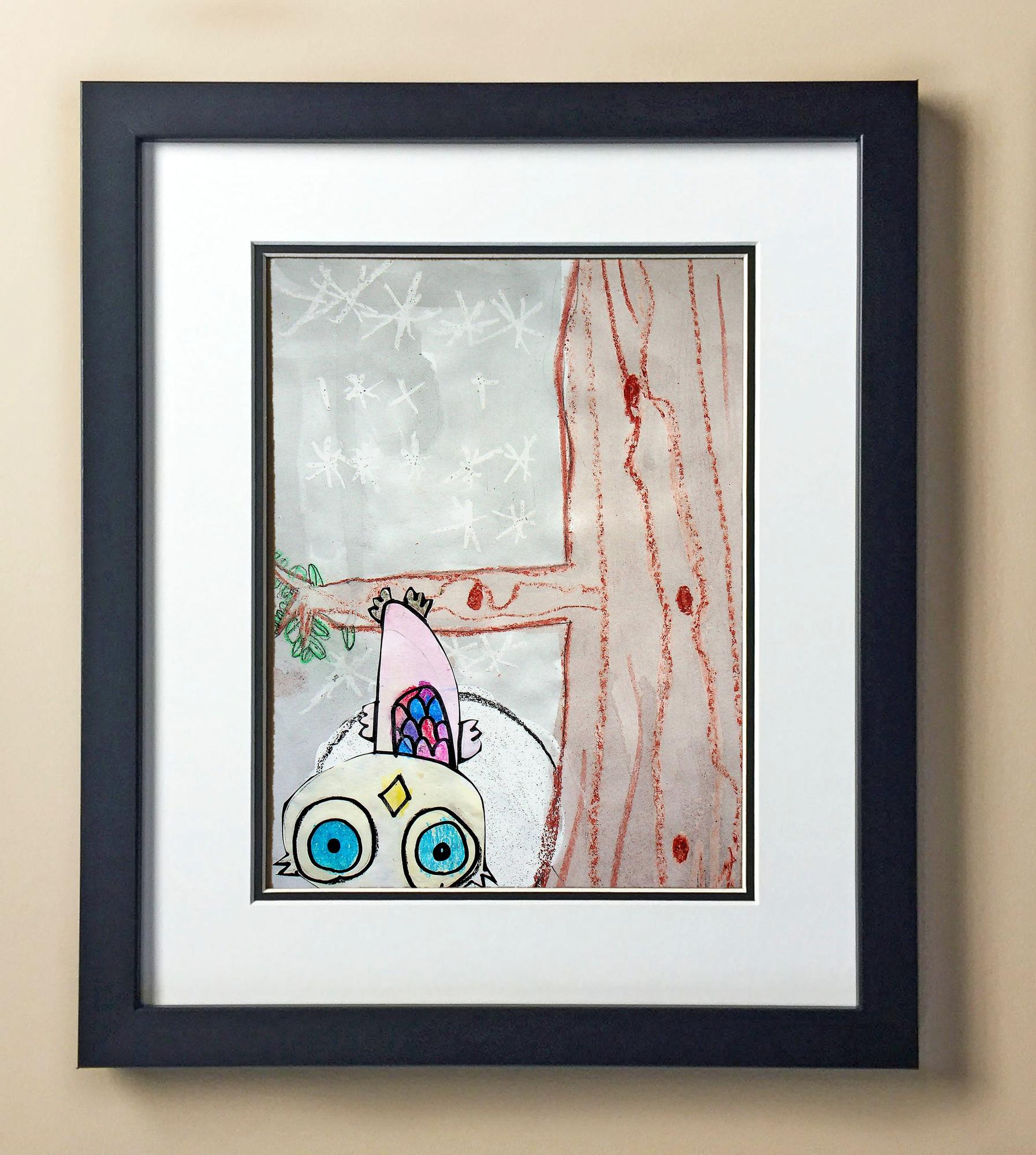 Included with the purchase is the Students Artwork, Frame, double matboard, shatter proof plexiglass, and a ready to hang backerboard with turnbuttons