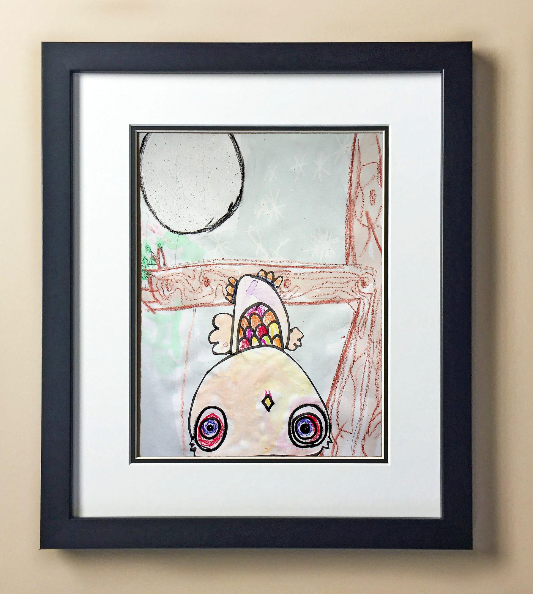 Included with the purchase is the Students Artwork, Frame, double matboard, shatter proof plexiglass, and a ready to hang backerboard with turnbuttons