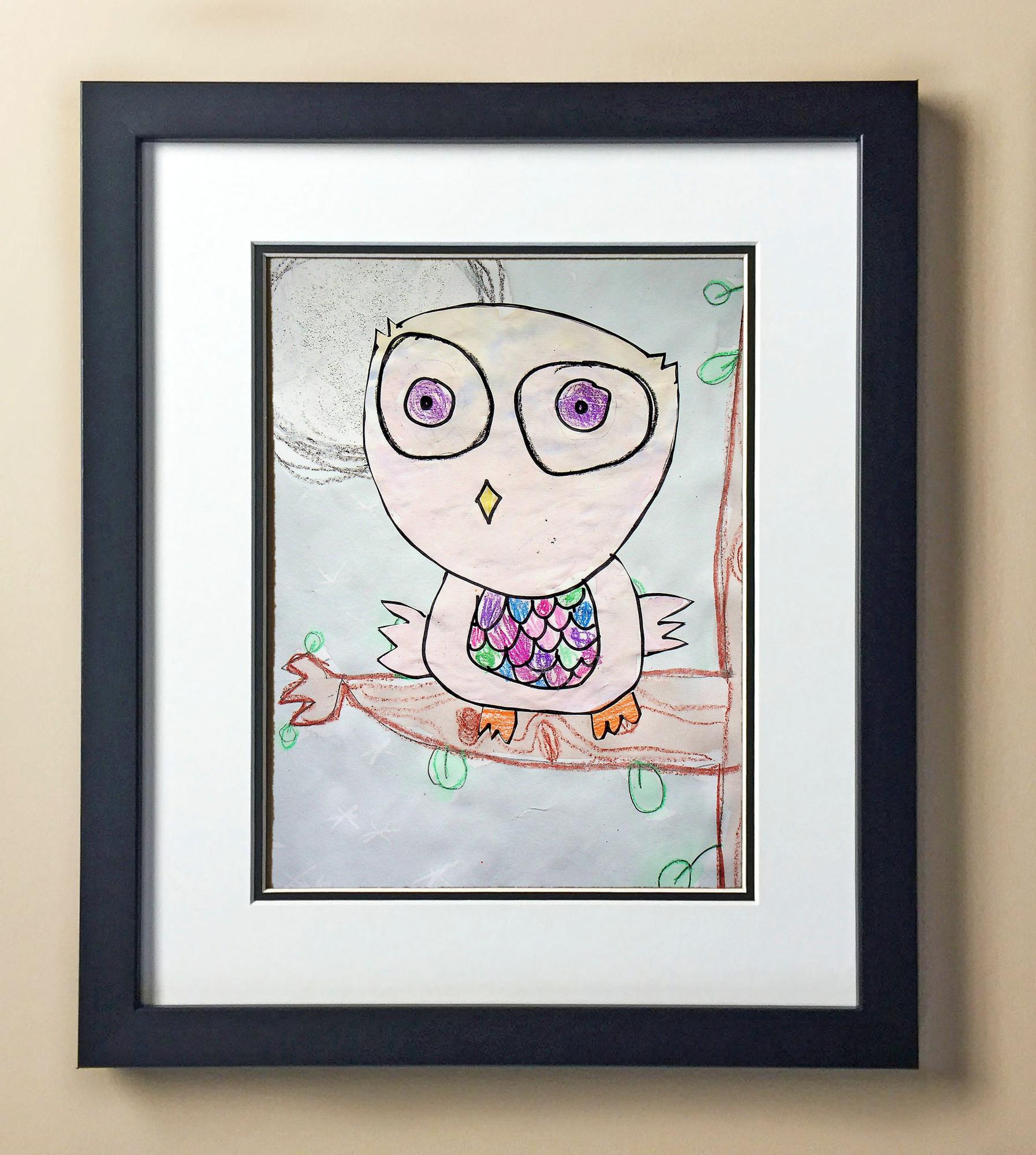 Included with the purchase is the Students Artwork, Frame, double matboard, shatter proof plexiglass, and a ready to hang backerboard with turnbuttons