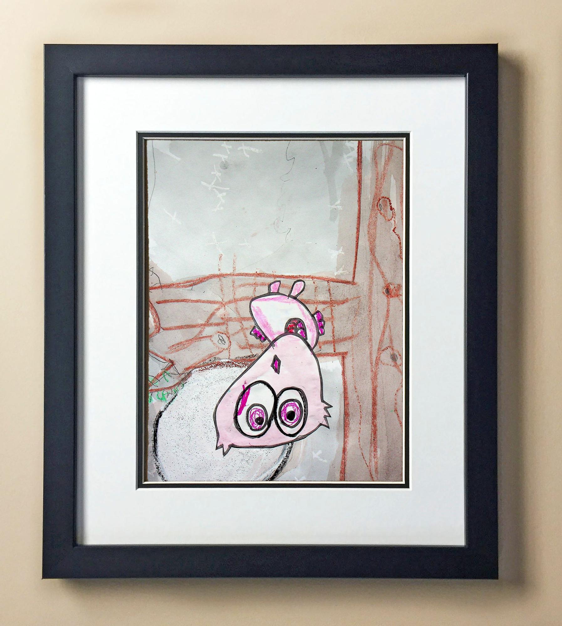 Included with the purchase is the Students Artwork, Frame, double matboard, shatter proof plexiglass, and a ready to hang backerboard with turnbuttons