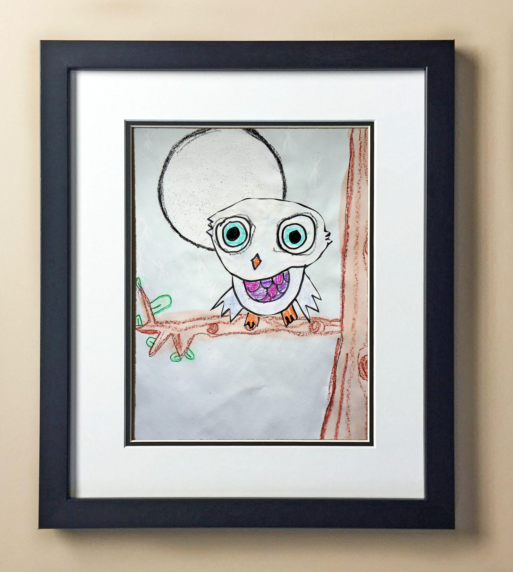 Included with the purchase is the Students Artwork, Frame, double matboard, shatter proof plexiglass, and a ready to hang backerboard with turnbuttons