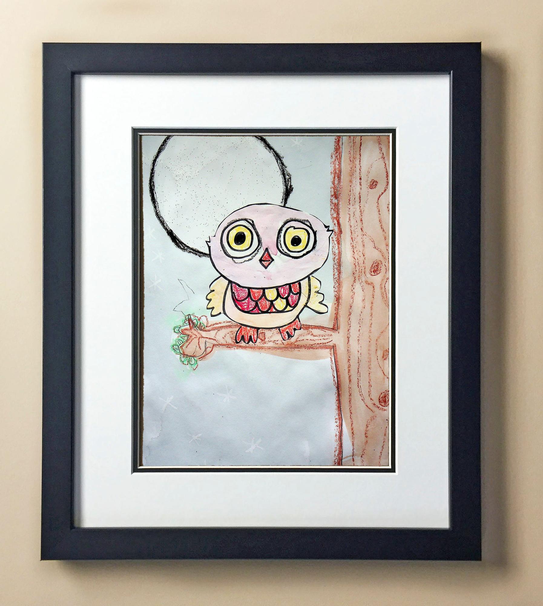 Included with the purchase is the Students Artwork, Frame, double matboard, shatter proof plexiglass, and a ready to hang backerboard with turnbuttons