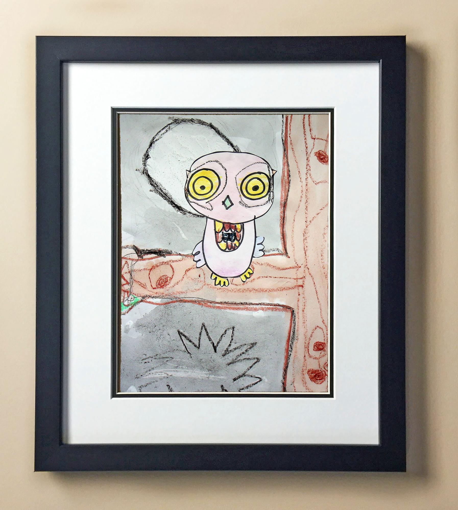 Included with the purchase is the Students Artwork, Frame, double matboard, shatter proof plexiglass, and a ready to hang backerboard with turnbuttons