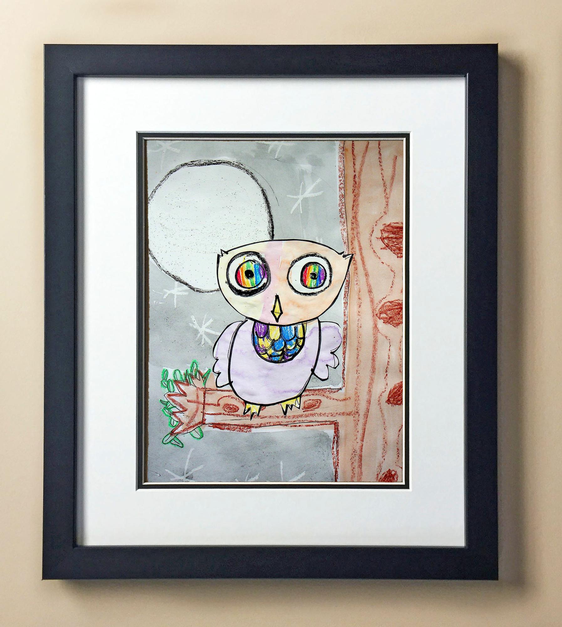 Included with the purchase is the Students Artwork, Frame, double matboard, shatter proof plexiglass, and a ready to hang backerboard with turnbuttons