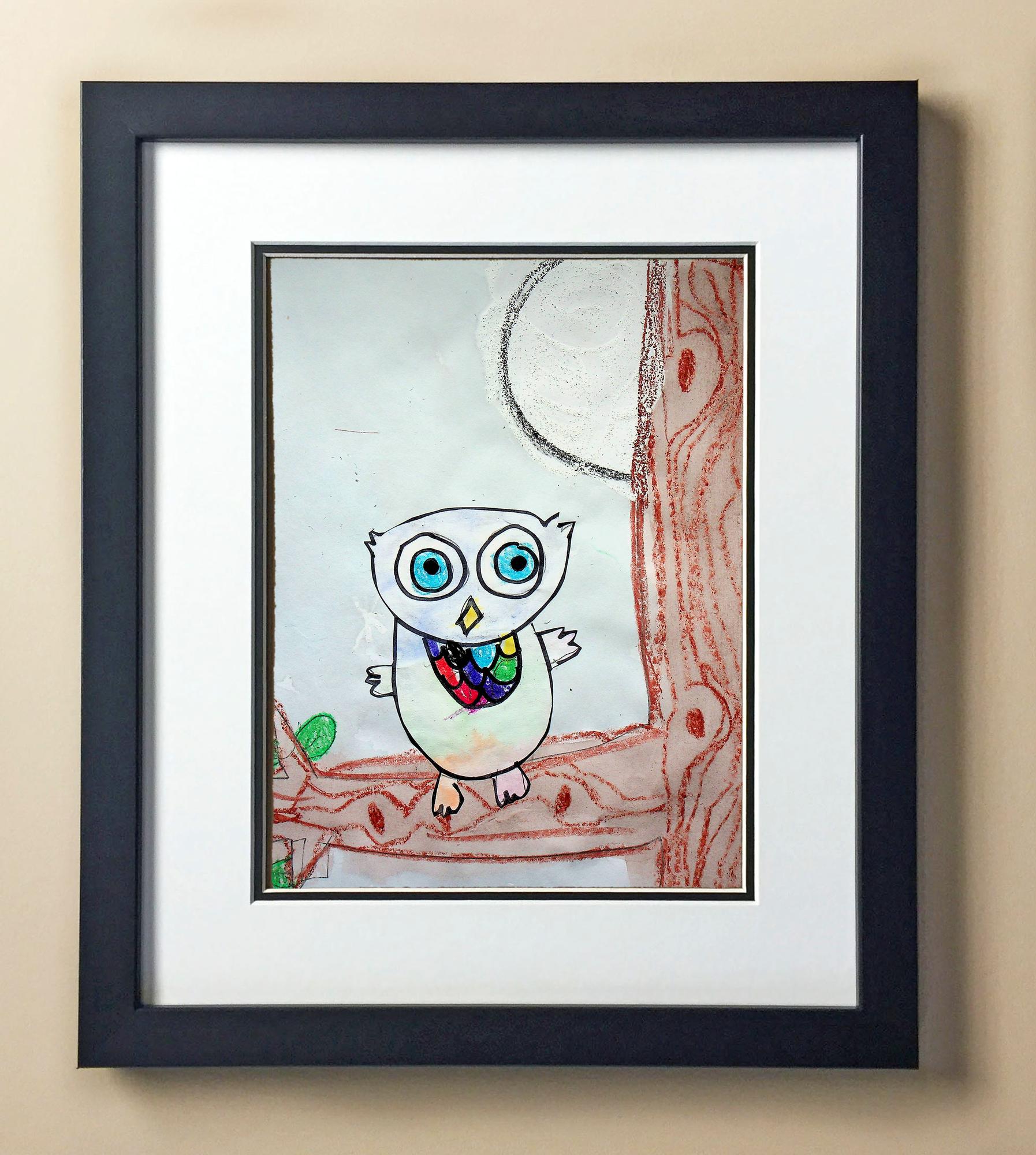 Included with the purchase is the Students Artwork, Frame, double matboard, shatter proof plexiglass, and a ready to hang backerboard with turnbuttons