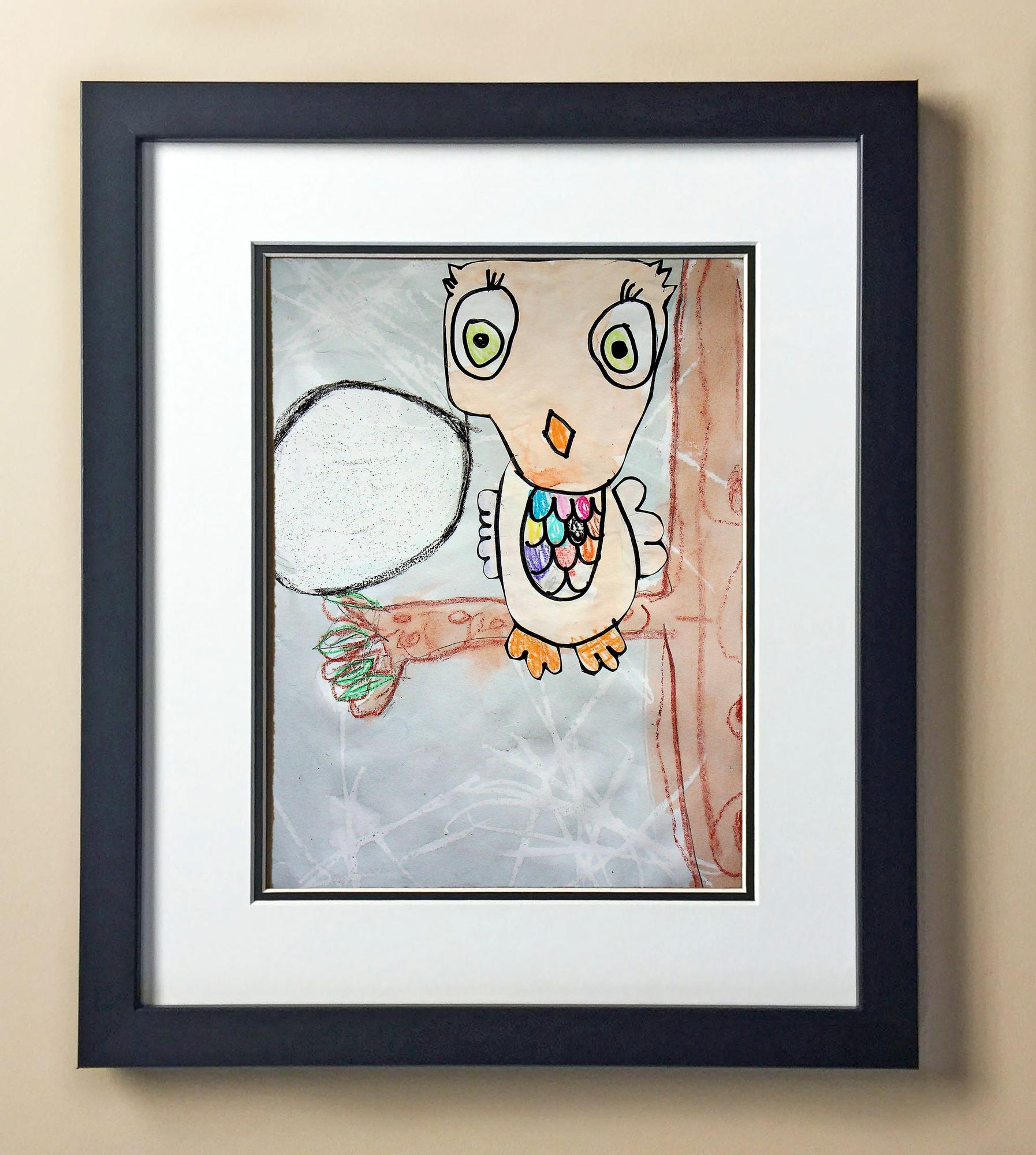 Included with the purchase is the Students Artwork, Frame, double matboard, shatter proof plexiglass, and a ready to hang backerboard with turnbuttons