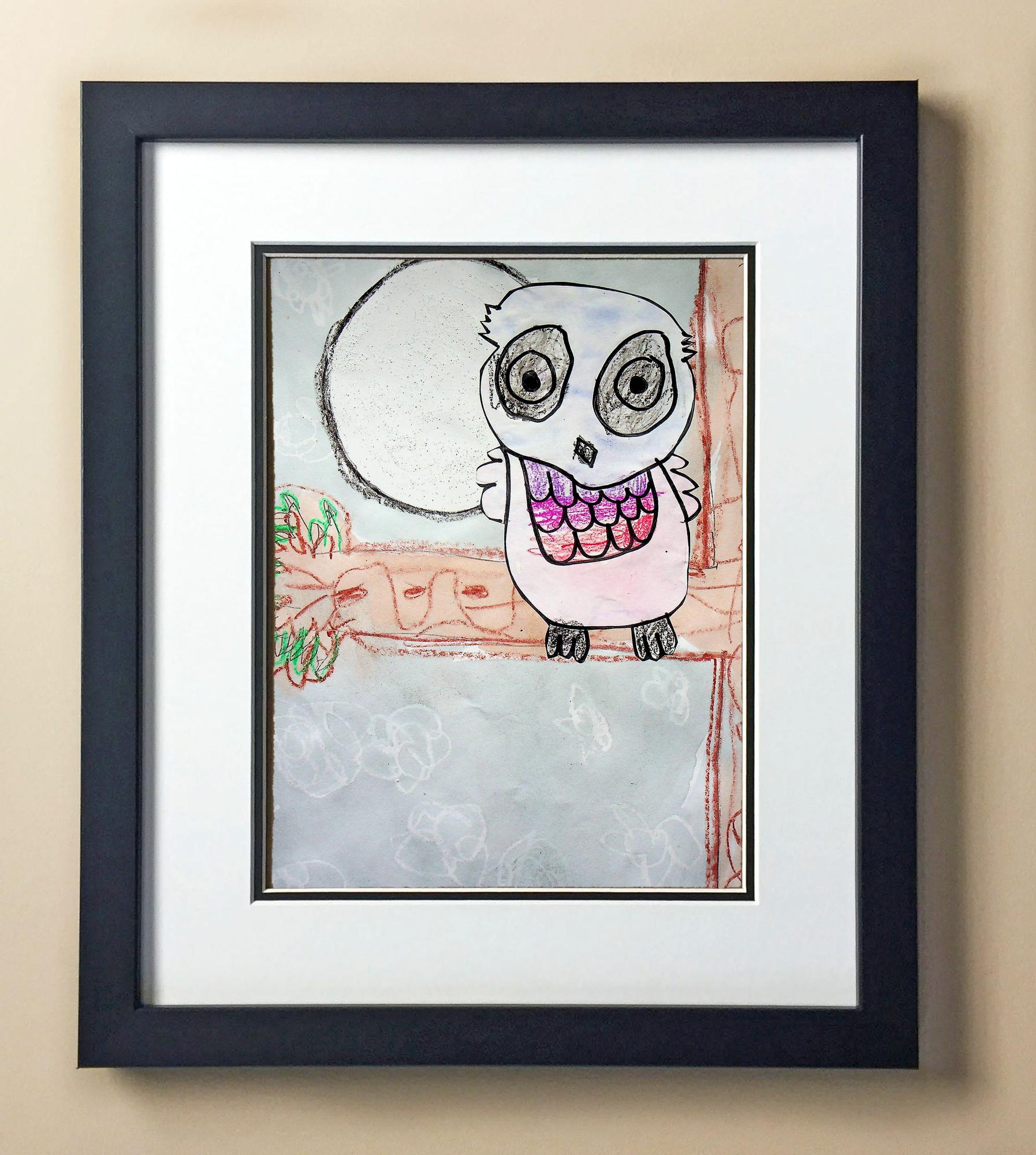 Included with the purchase is the Students Artwork, Frame, double matboard, shatter proof plexiglass, and a ready to hang backerboard with turnbuttons