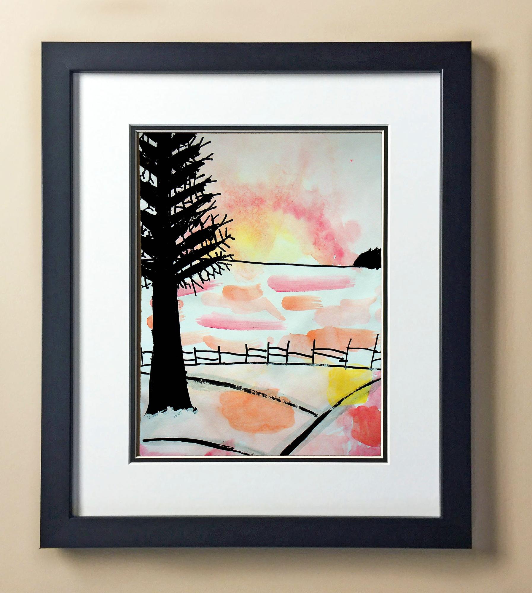 Included with the purchase is the Students Artwork, Frame, double matboard, shatter proof plexiglass, and a ready to hang backerboard with turnbuttons