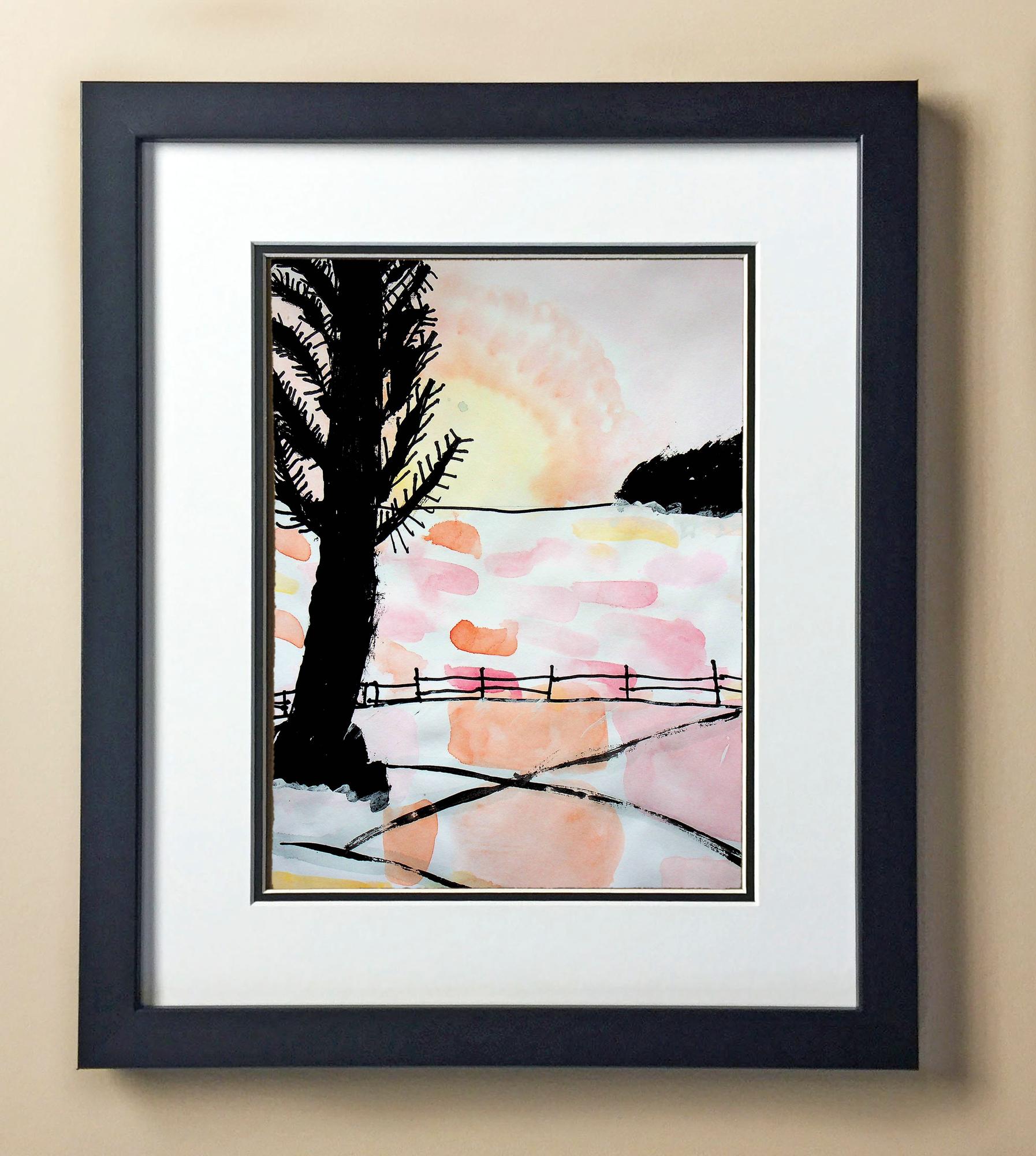 Included with the purchase is the Students Artwork, Frame, double matboard, shatter proof plexiglass, and a ready to hang backerboard with turnbuttons
