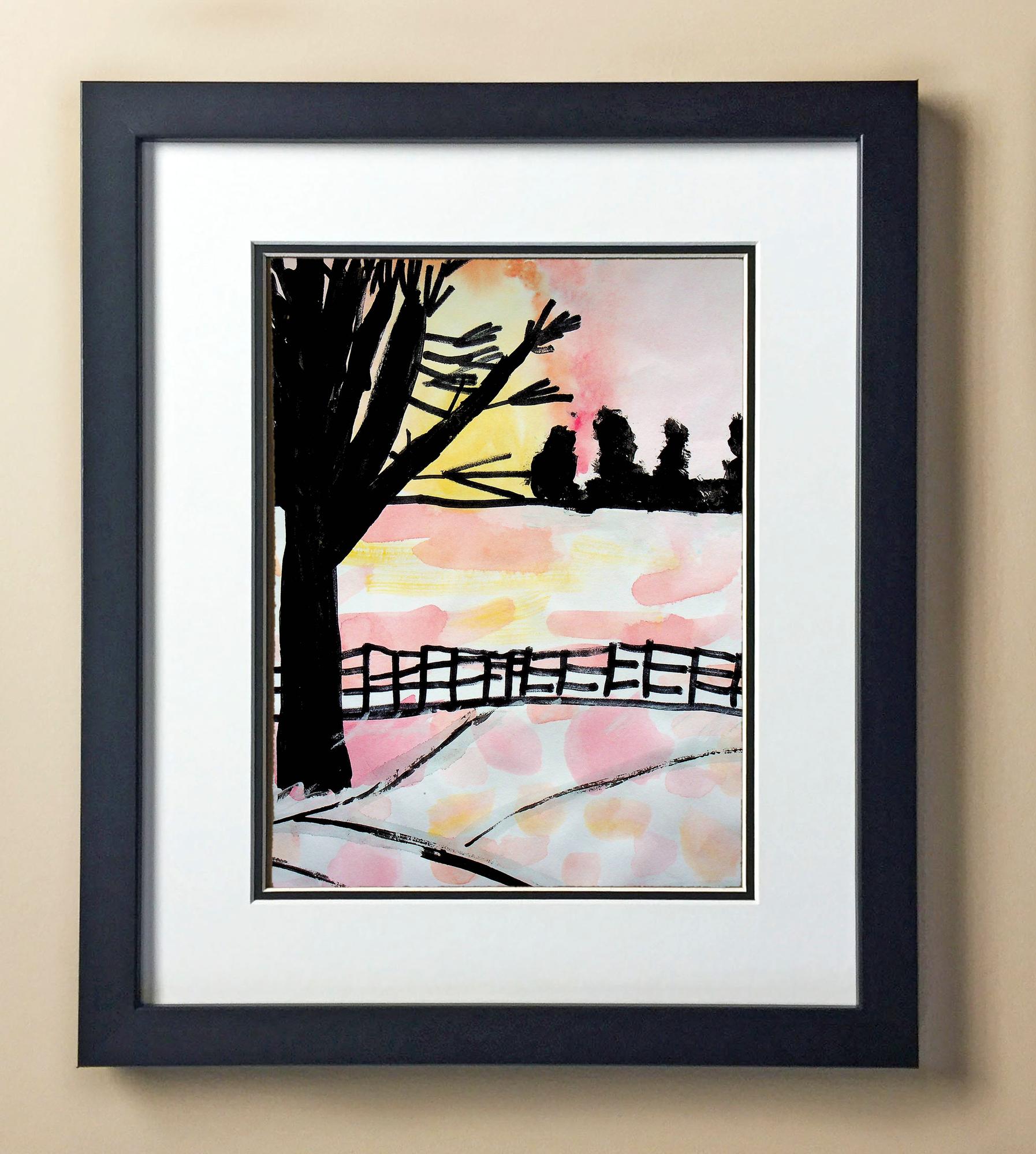 Included with the purchase is the Students Artwork, Frame, double matboard, shatter proof plexiglass, and a ready to hang backerboard with turnbuttons
