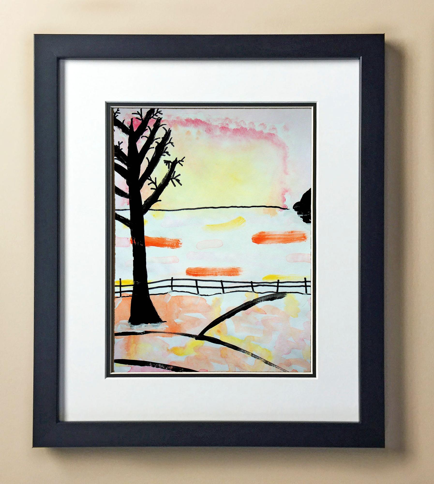 Included with the purchase is the Students Artwork, Frame, double matboard, shatter proof plexiglass, and a ready to hang backerboard with turnbuttons
