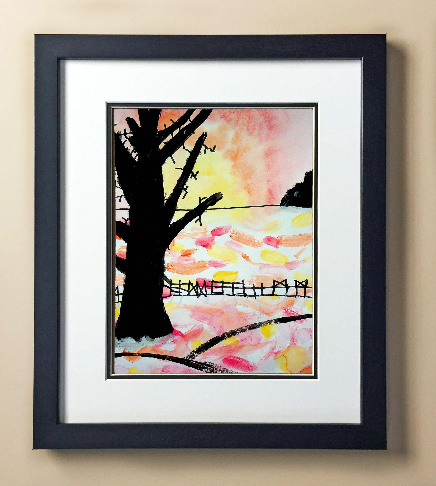 Included with the purchase is the Students Artwork, Frame, double matboard, shatter proof plexiglass, and a ready to hang backerboard with turnbuttons