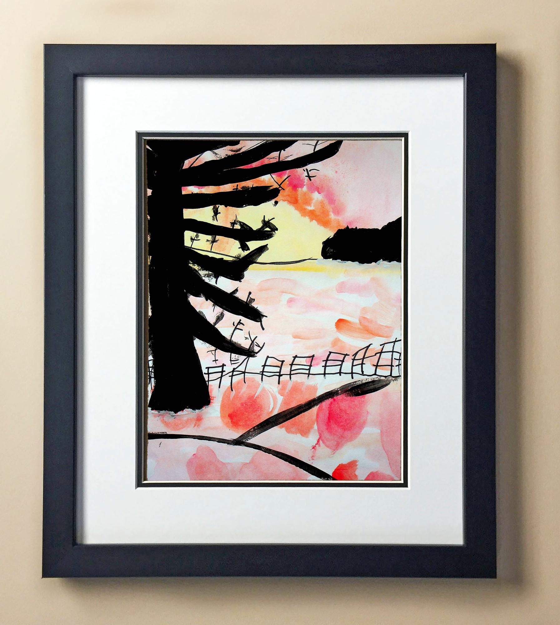 Included with the purchase is the Students Artwork, Frame, double matboard, shatter proof plexiglass, and a ready to hang backerboard with turnbuttons