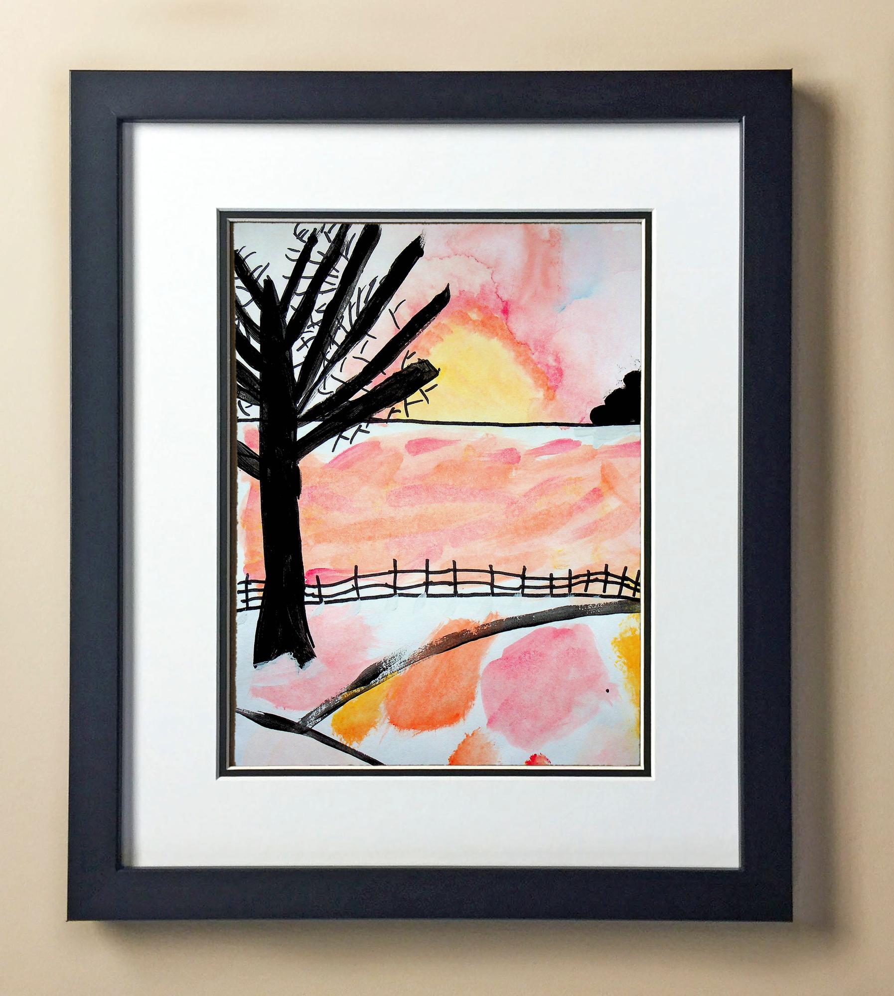 Included with the purchase is the Students Artwork, Frame, double matboard, shatter proof plexiglass, and a ready to hang backerboard with turnbuttons