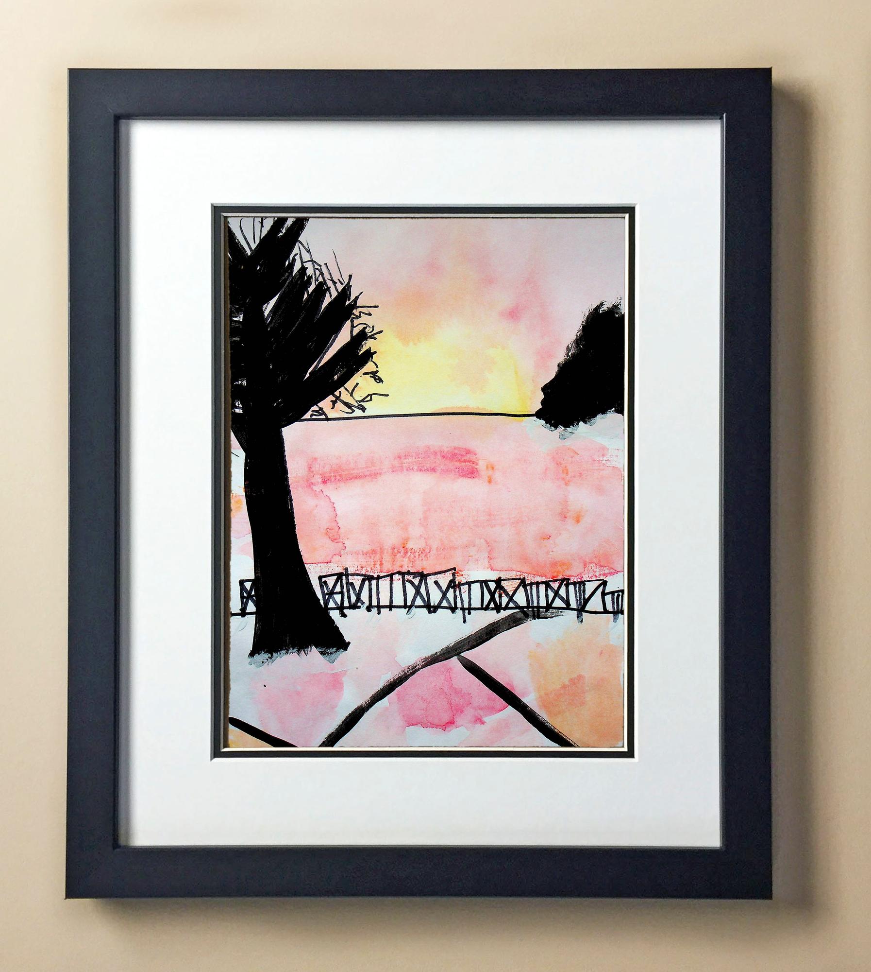Included with the purchase is the Students Artwork, Frame, double matboard, shatter proof plexiglass, and a ready to hang backerboard with turnbuttons