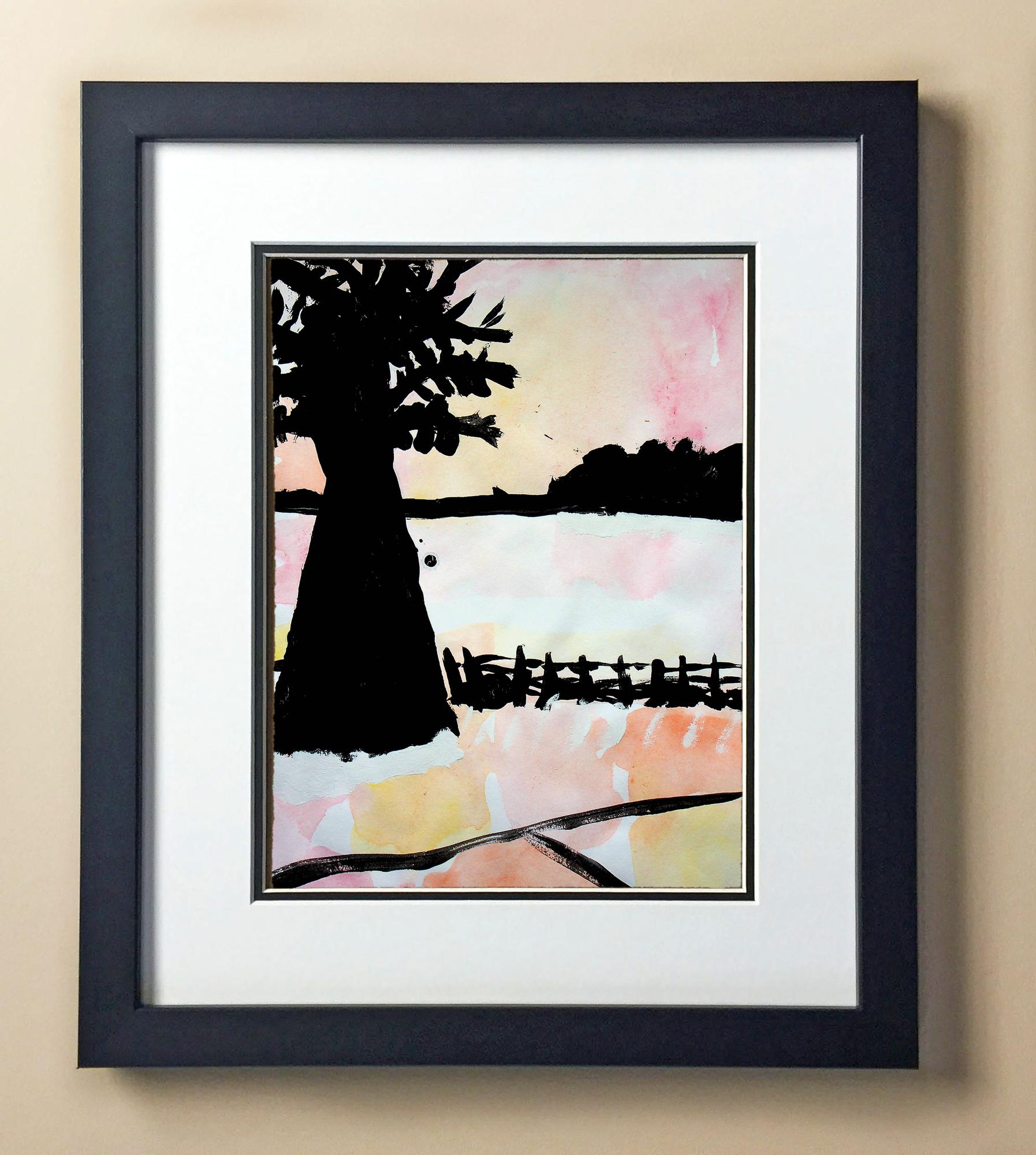 Included with the purchase is the Students Artwork, Frame, double matboard, shatter proof plexiglass, and a ready to hang backerboard with turnbuttons