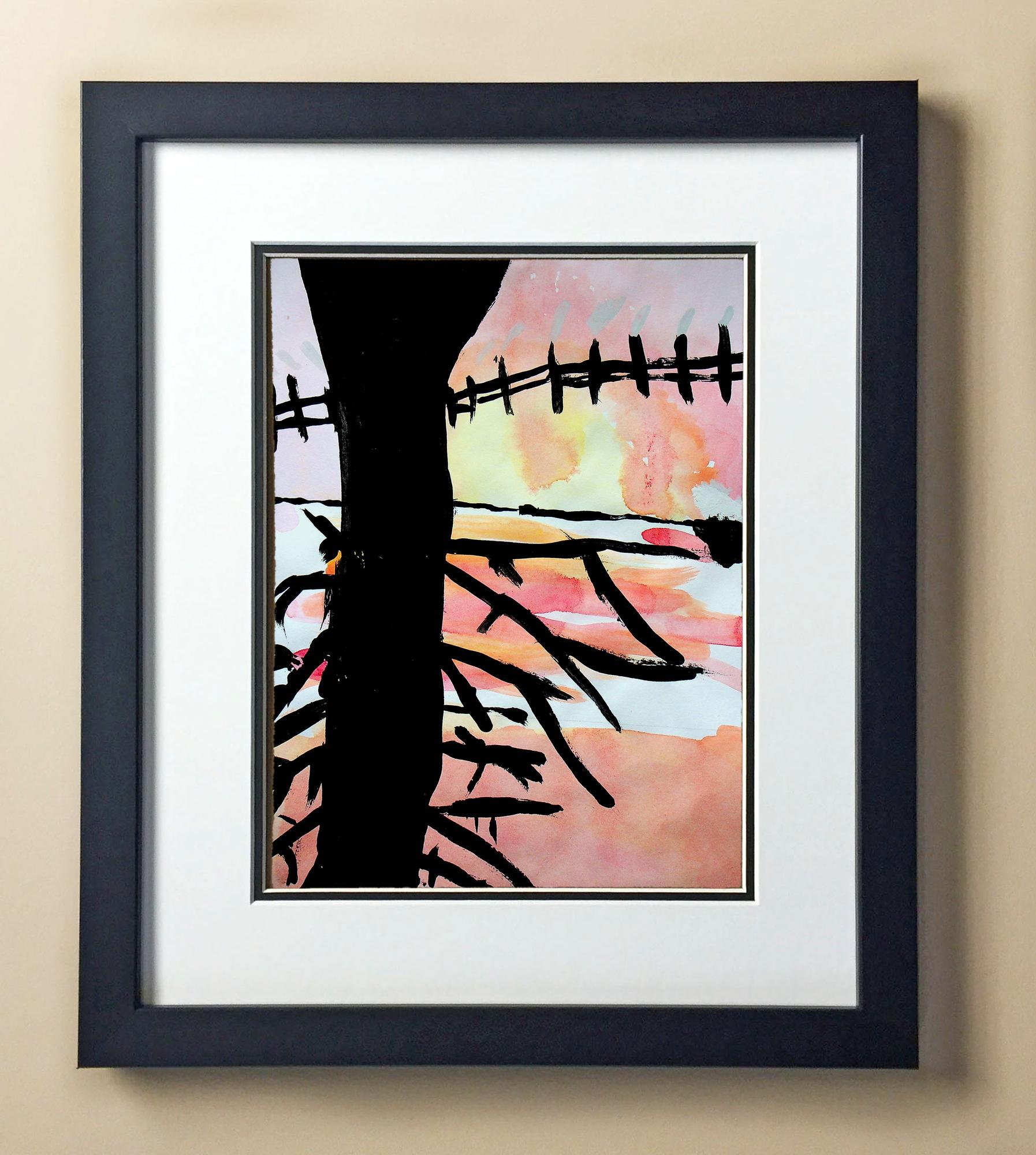 Included with the purchase is the Students Artwork, Frame, double matboard, shatter proof plexiglass, and a ready to hang backerboard with turnbuttons