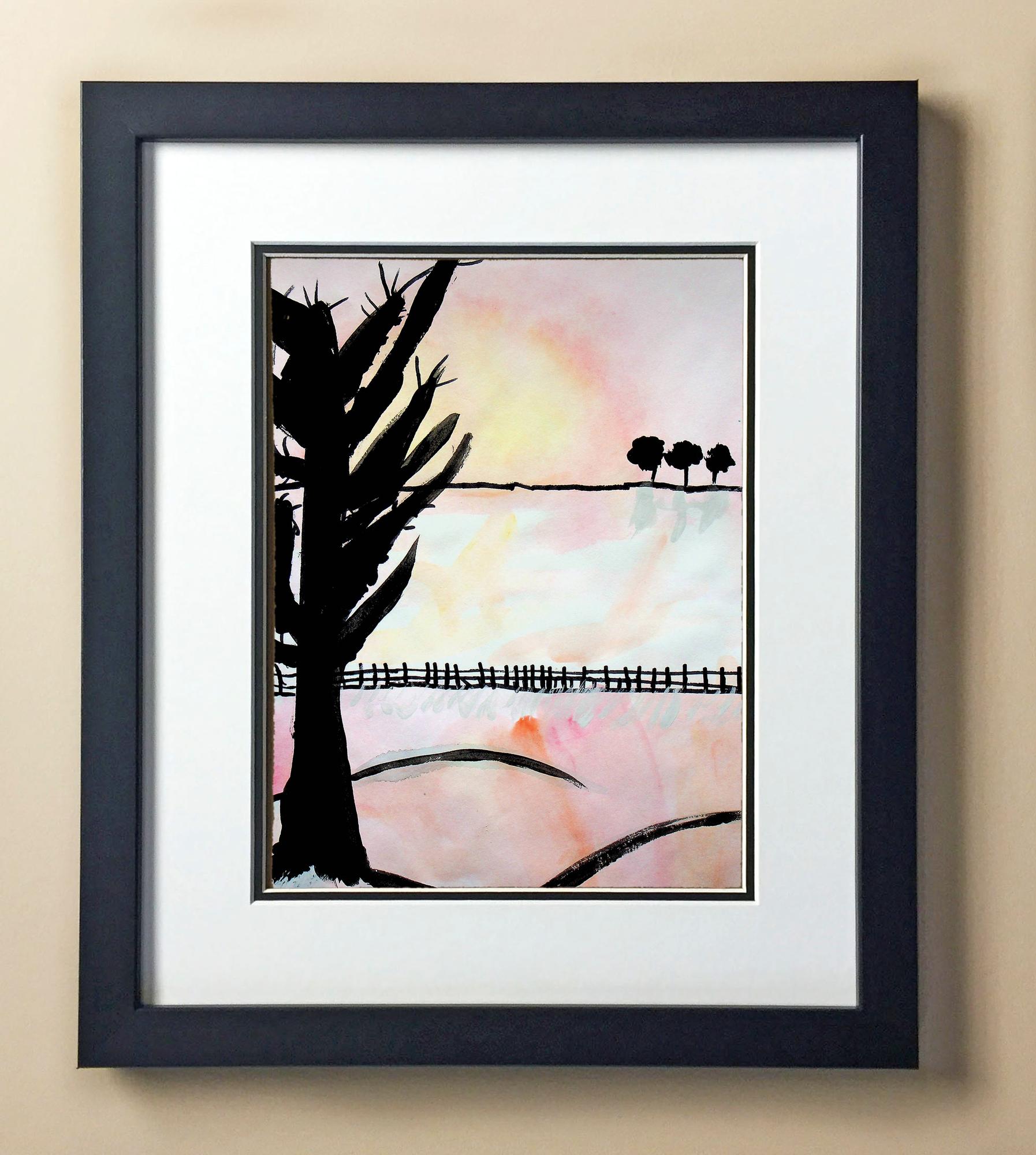 Included with the purchase is the Students Artwork, Frame, double matboard, shatter proof plexiglass, and a ready to hang backerboard with turnbuttons