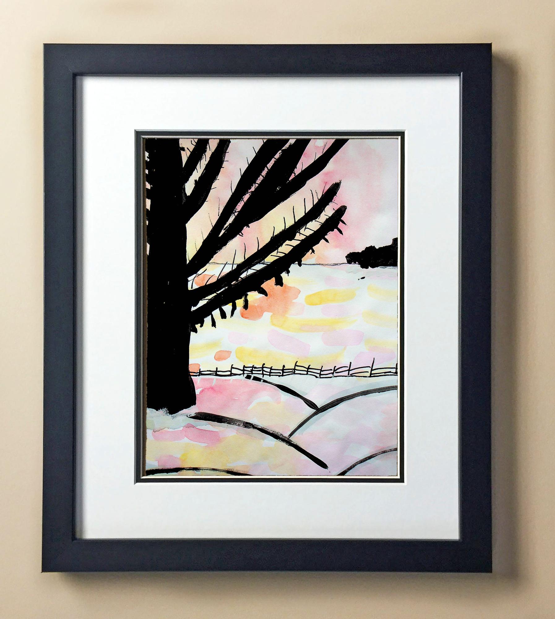 Included with the purchase is the Students Artwork, Frame, double matboard, shatter proof plexiglass, and a ready to hang backerboard with turnbuttons