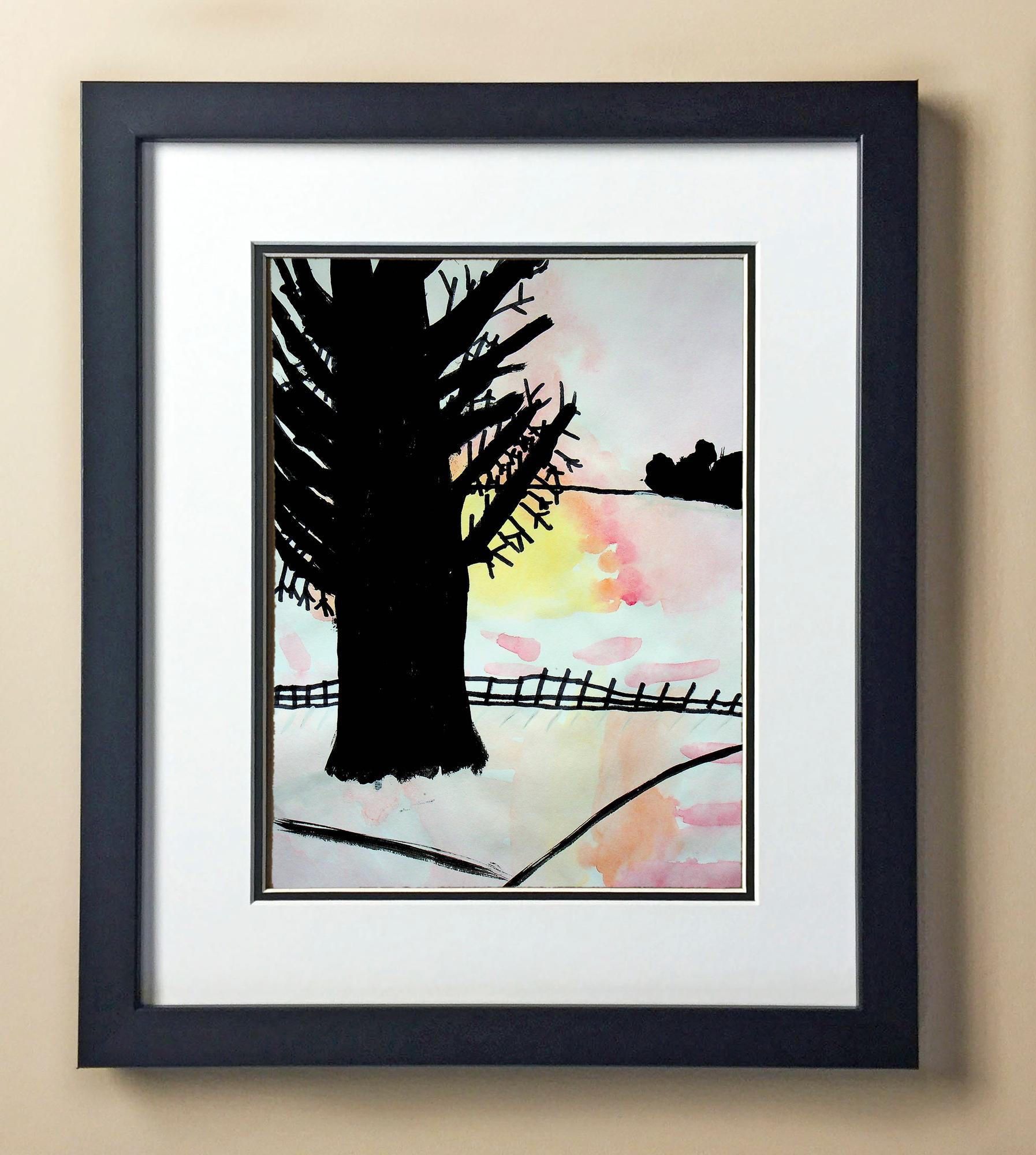 Included with the purchase is the Students Artwork, Frame, double matboard, shatter proof plexiglass, and a ready to hang backerboard with turnbuttons