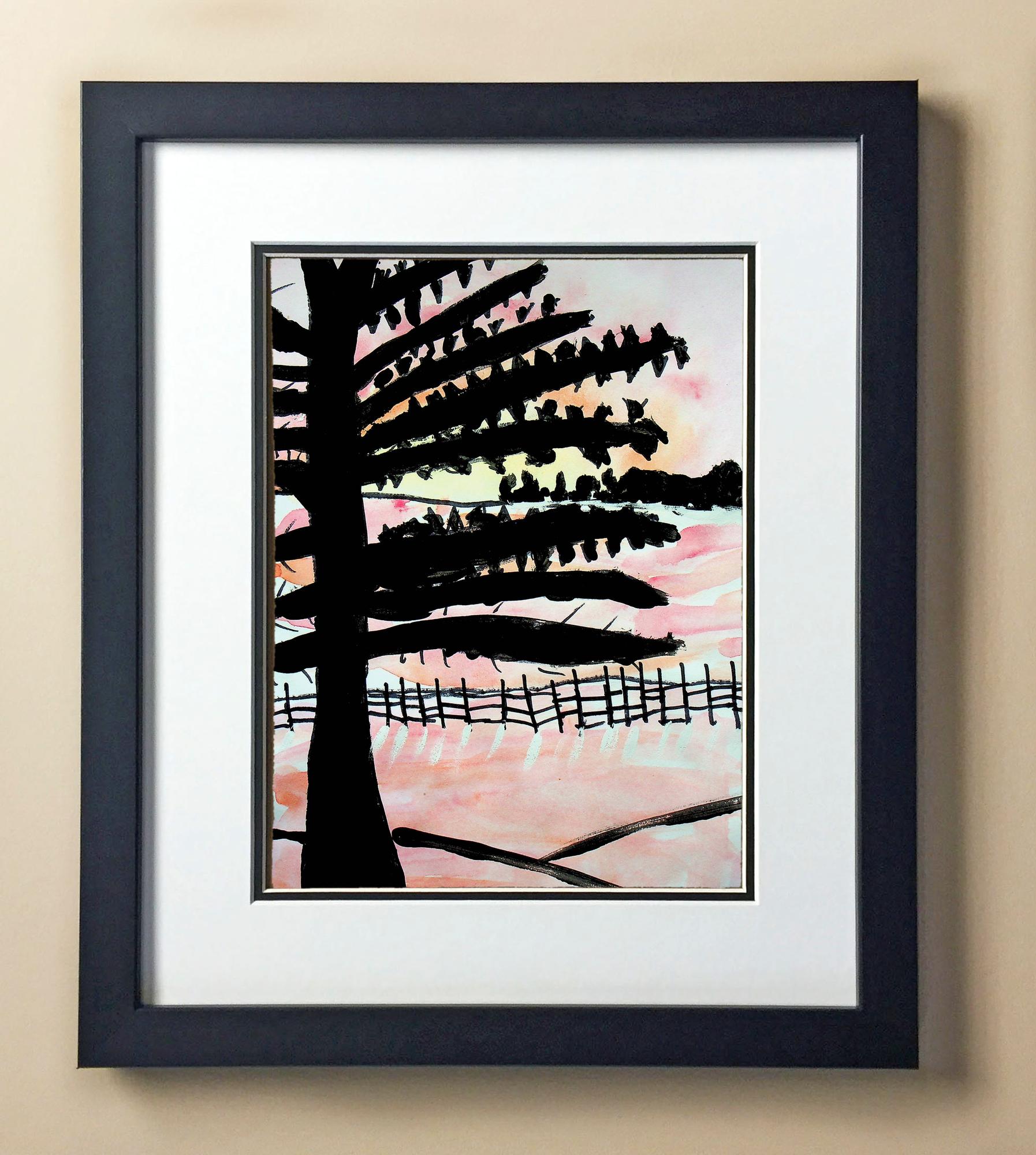 Included with the purchase is the Students Artwork, Frame, double matboard, shatter proof plexiglass, and a ready to hang backerboard with turnbuttons