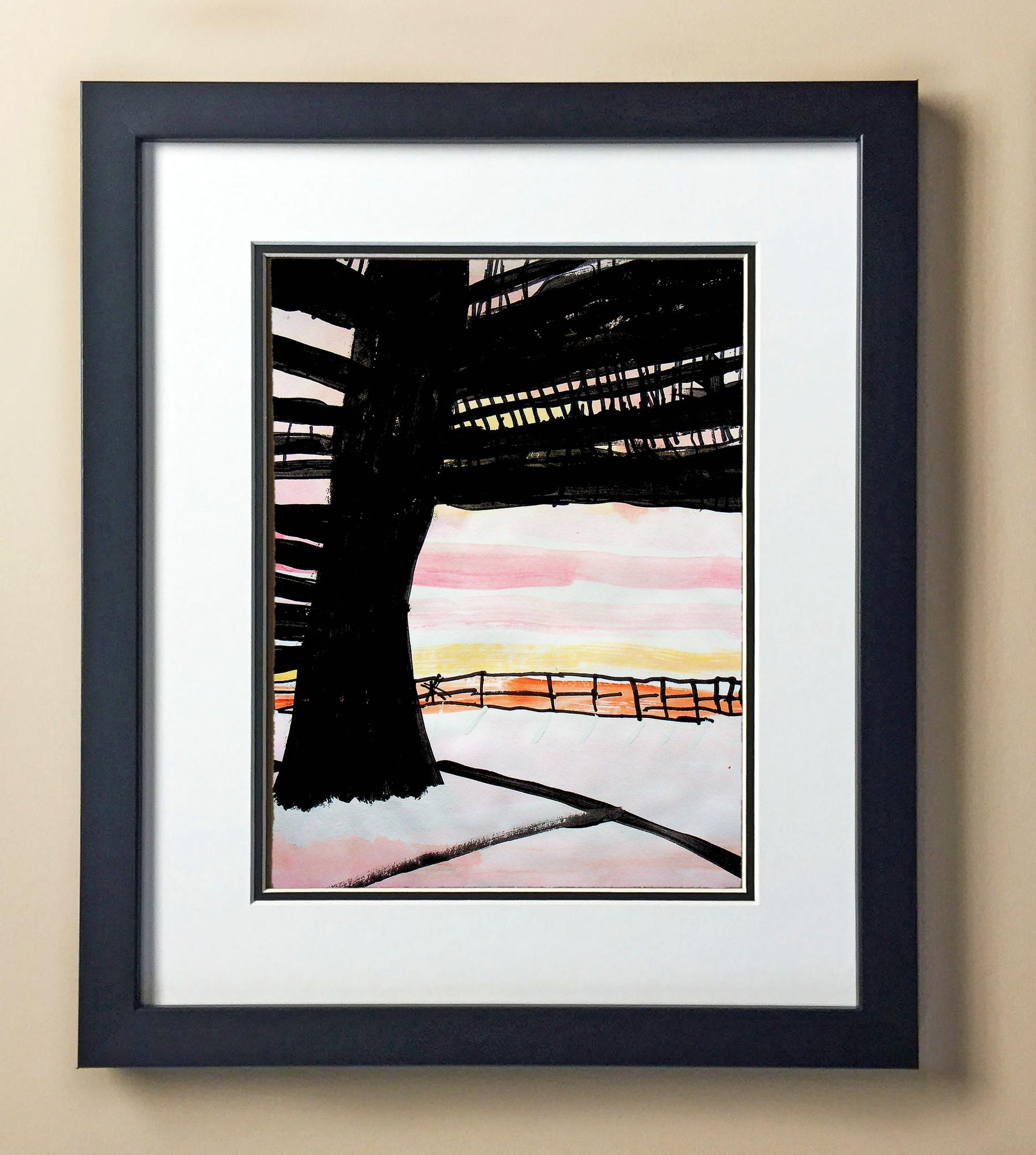 Included with the purchase is the Students Artwork, Frame, double matboard, shatter proof plexiglass, and a ready to hang backerboard with turnbuttons