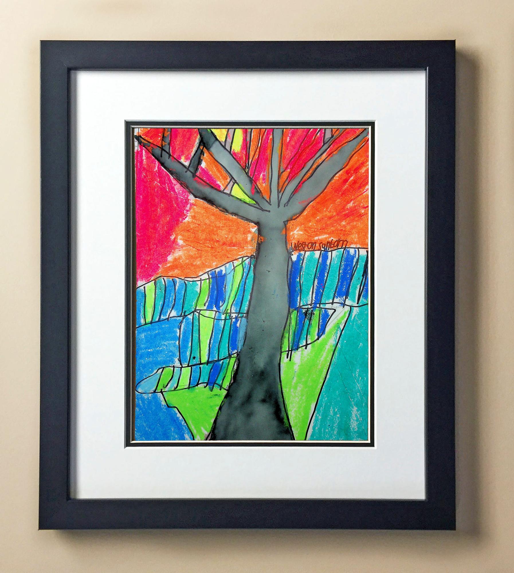Included with the purchase is the Students Artwork, Frame, double matboard, shatter proof plexiglass, and a ready to hang backerboard with turnbuttons
