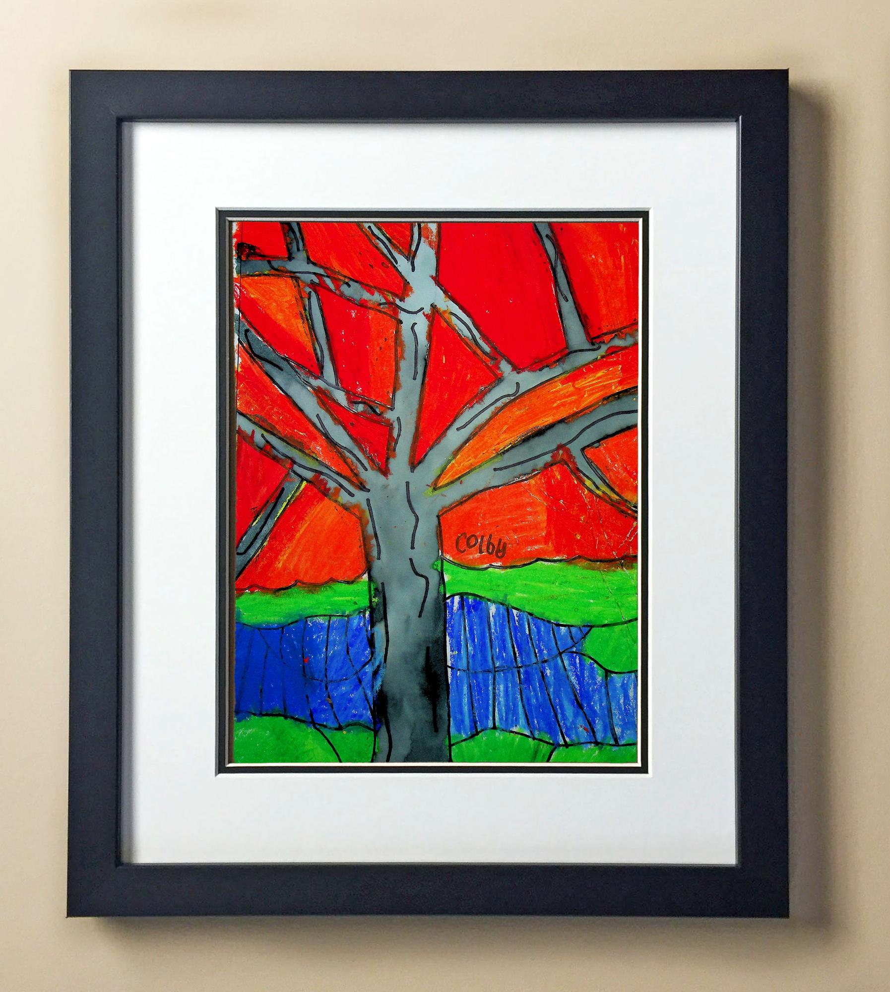 Included with the purchase is the Students Artwork, Frame, double matboard, shatter proof plexiglass, and a ready to hang backerboard with turnbuttons