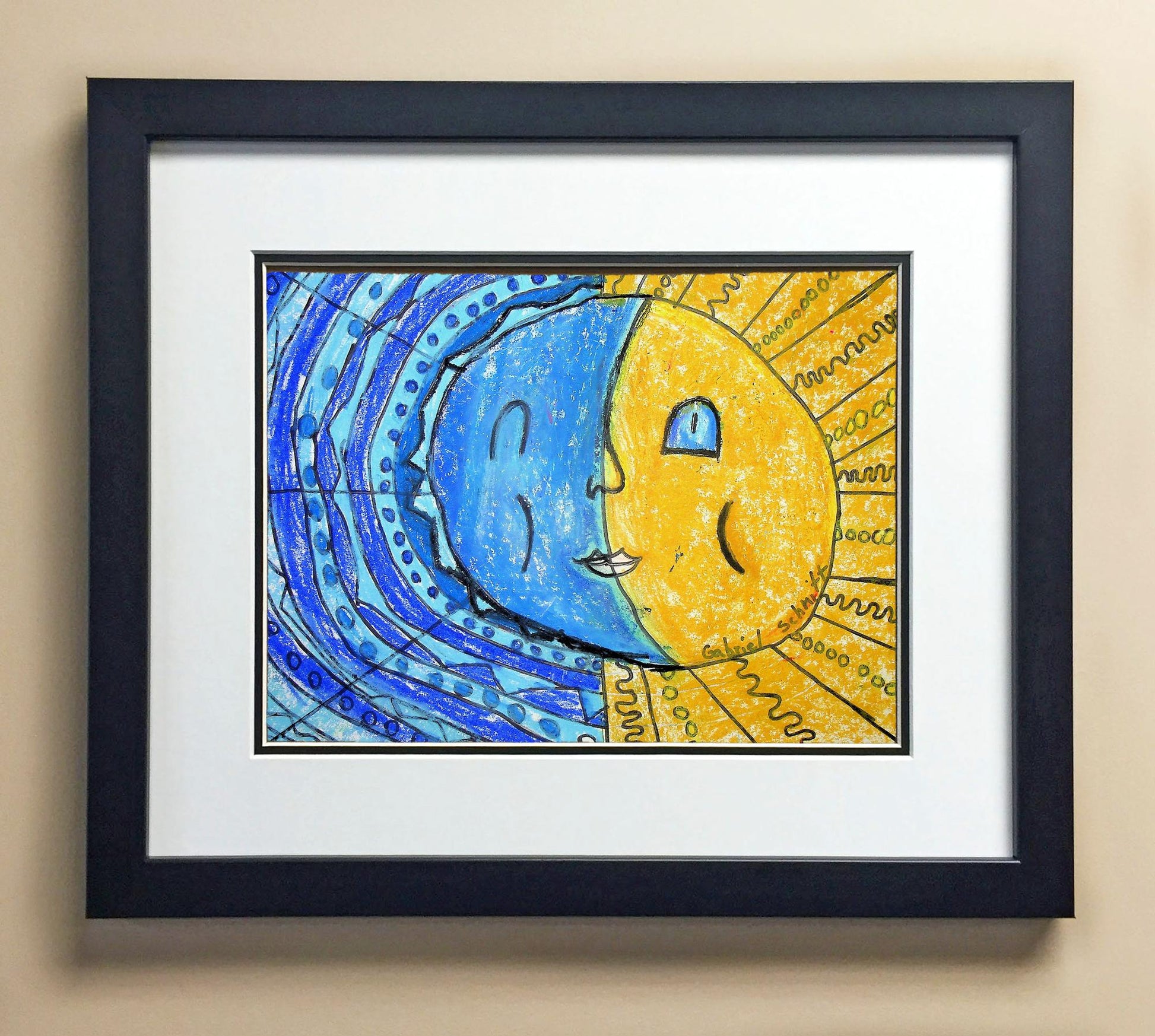 Included with the purchase is the Students Artwork, Frame, double matboard, shatter proof plexiglass, and a ready to hang backerboard with turnbuttons