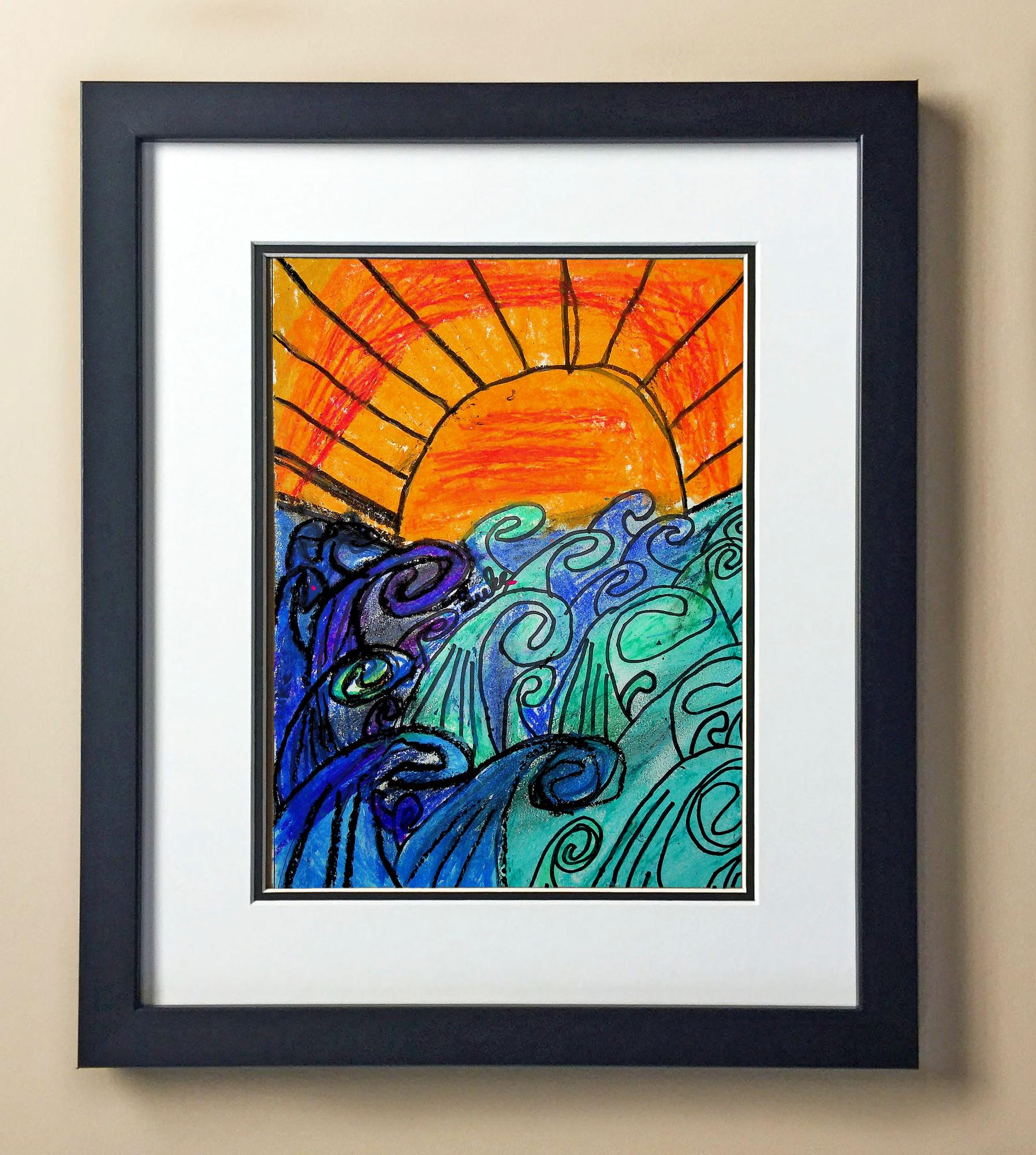Included with the purchase is the Students Artwork, Frame, double matboard, shatter proof plexiglass, and a ready to hang backerboard with turnbuttons