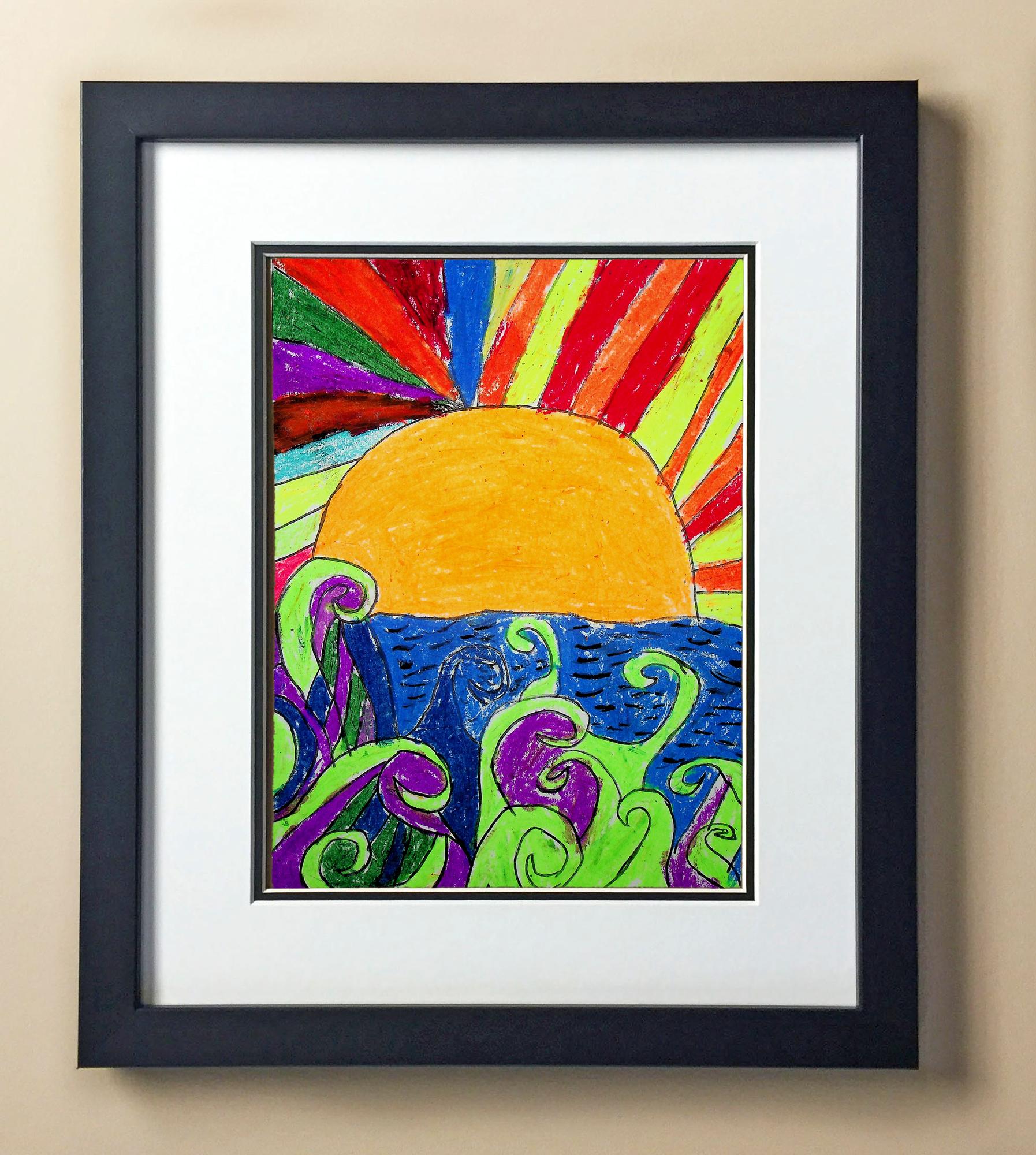 Included with the purchase is the Students Artwork, Frame, double matboard, shatter proof plexiglass, and a ready to hang backerboard with turnbuttons