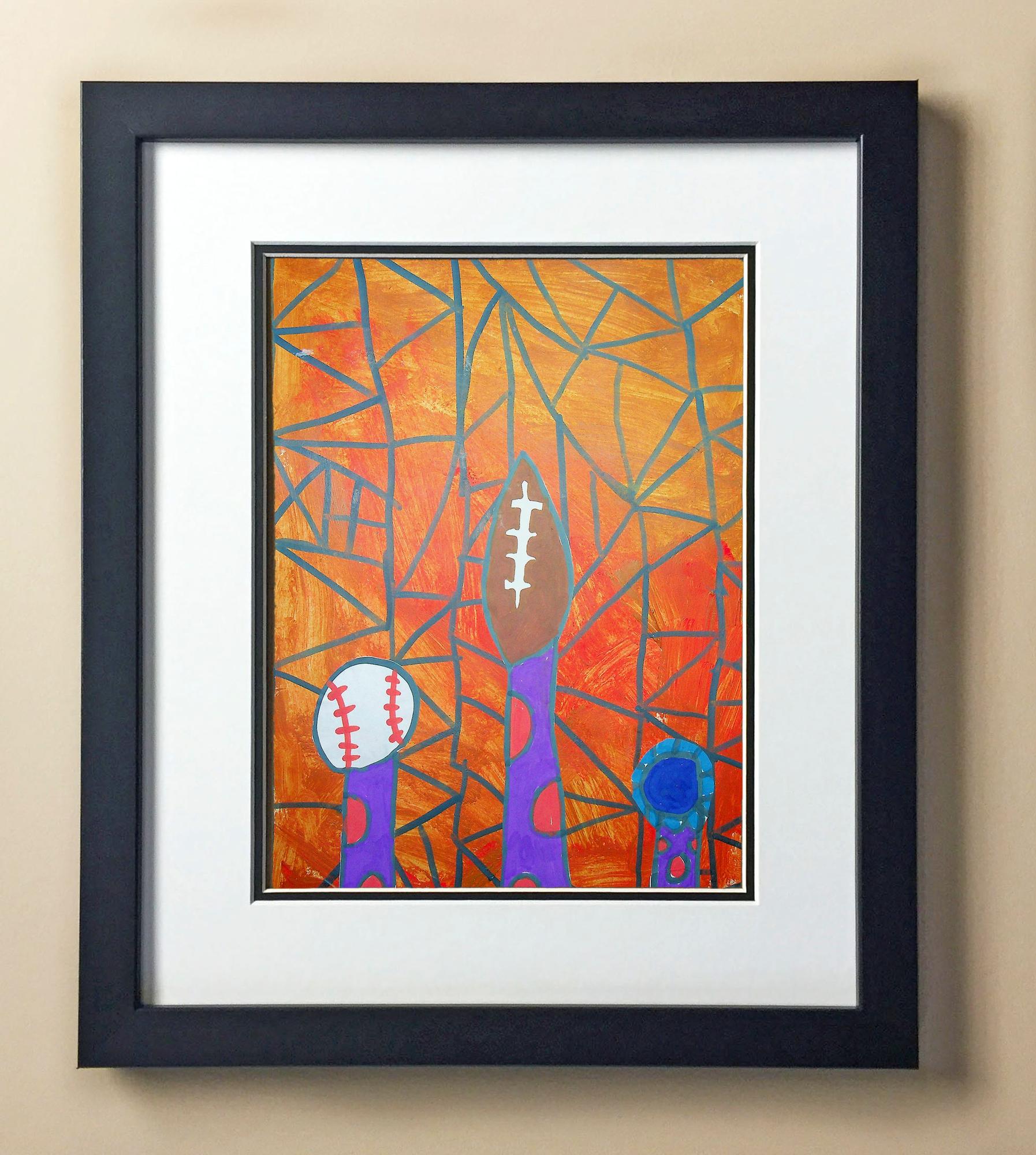 Included with the purchase is the Students Artwork, Frame, double matboard, shatter proof plexiglass, and a ready to hang backerboard with turnbuttons