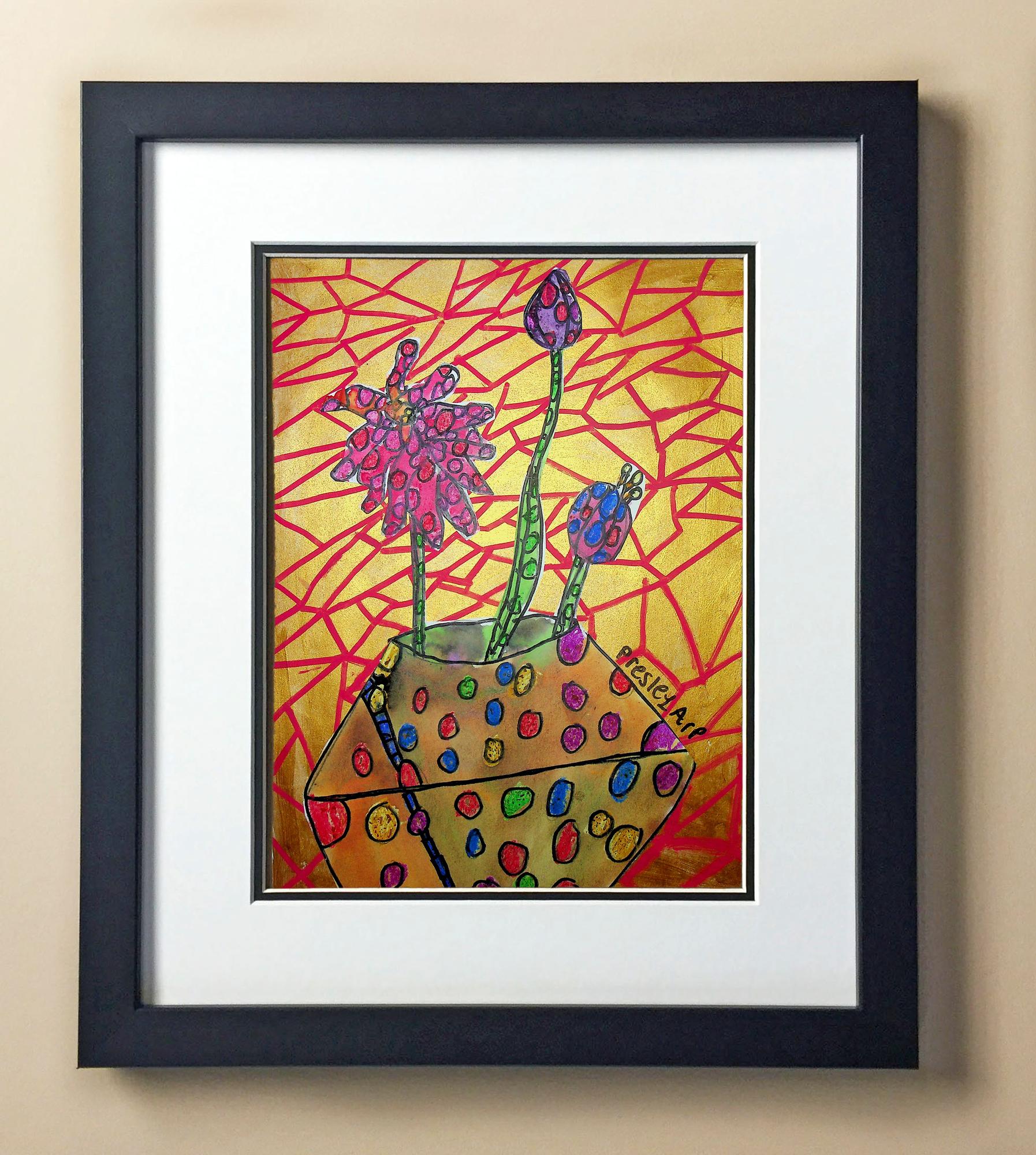 Included with the purchase is the Students Artwork, Frame, double matboard, shatter proof plexiglass, and a ready to hang backerboard with turnbuttons