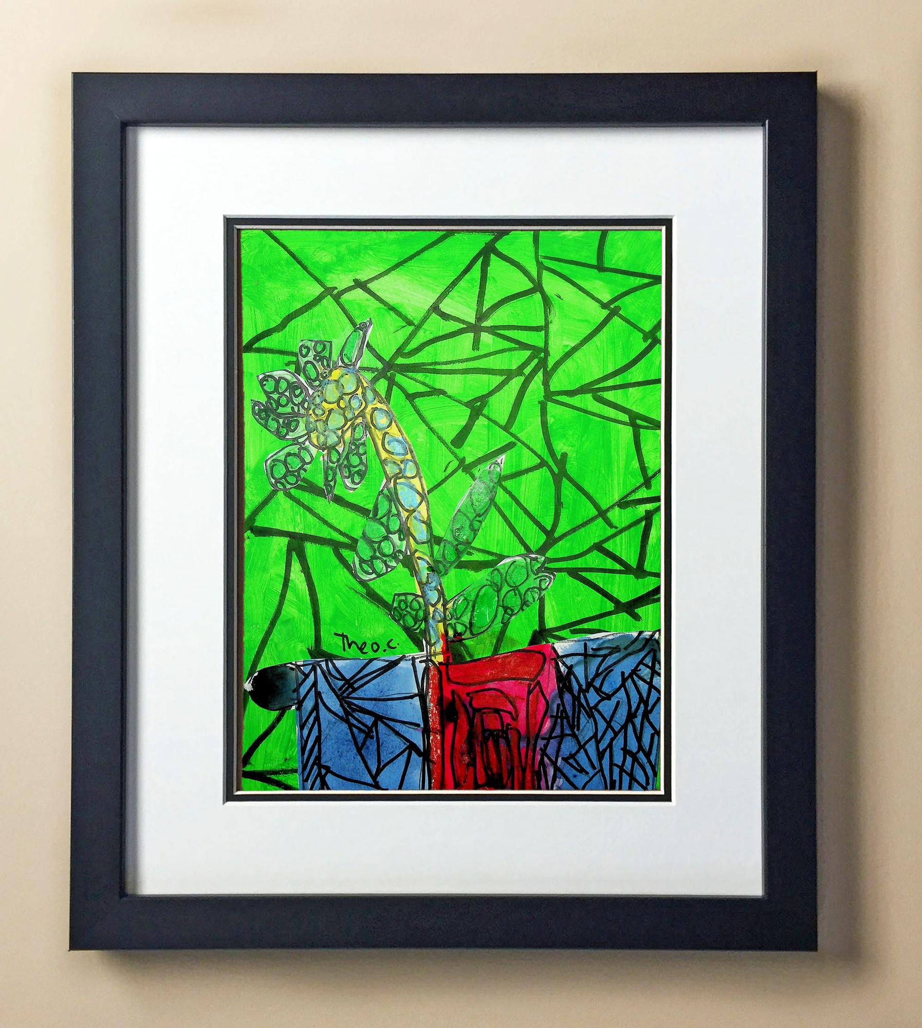 Included with the purchase is the Students Artwork, Frame, double matboard, shatter proof plexiglass, and a ready to hang backerboard with turnbuttons
