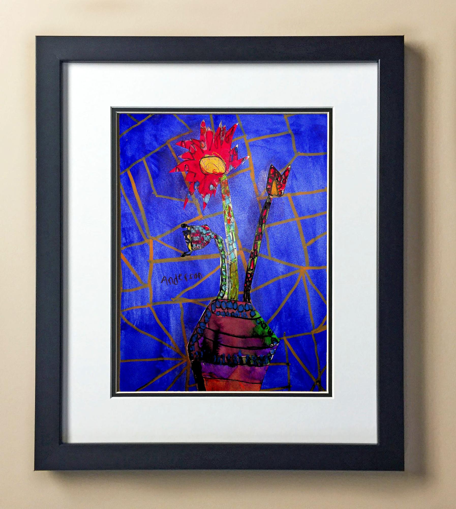 Included with the purchase is the Students Artwork, Frame, double matboard, shatter proof plexiglass, and a ready to hang backerboard with turnbuttons