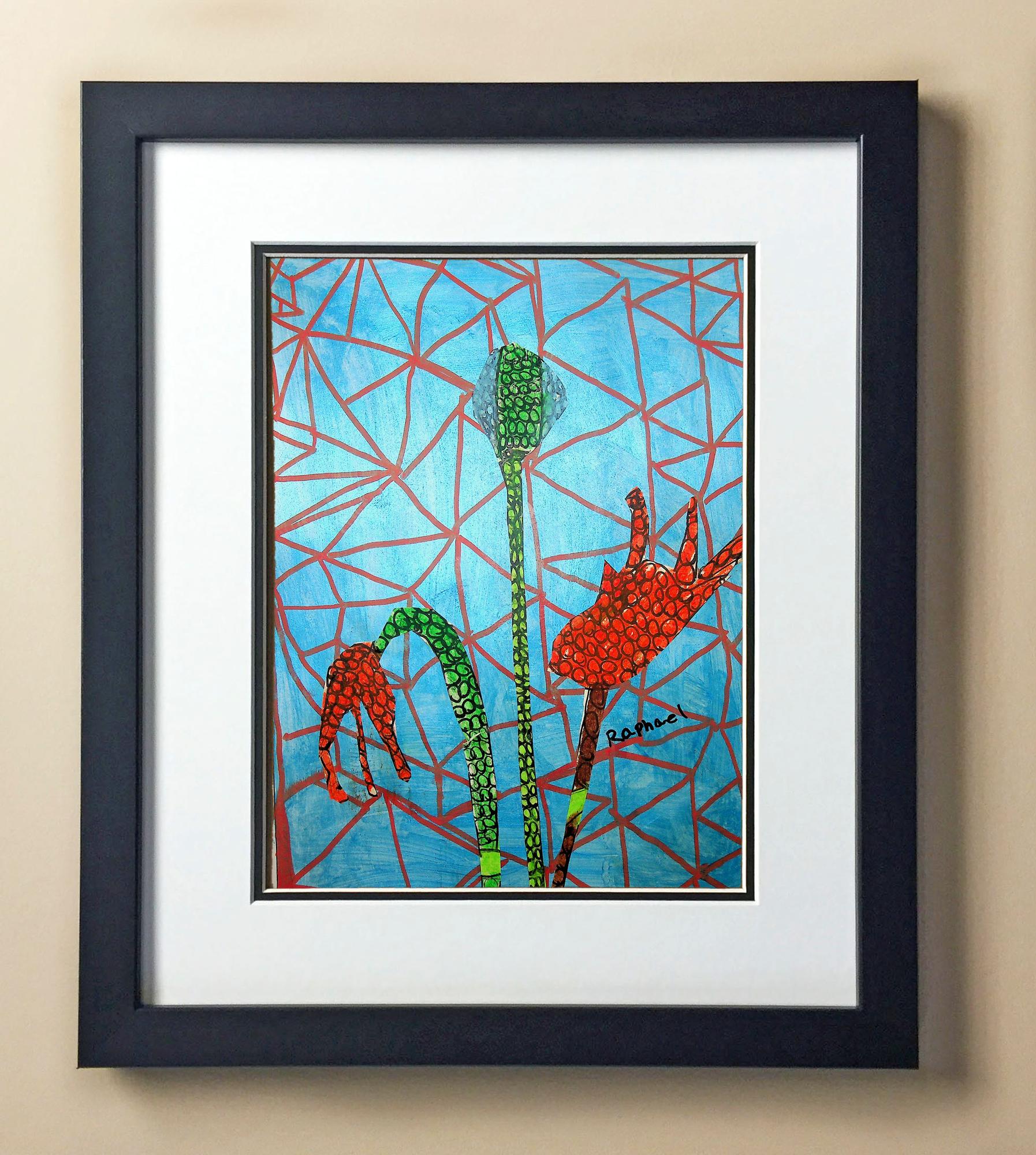 Included with the purchase is the Students Artwork, Frame, double matboard, shatter proof plexiglass, and a ready to hang backerboard with turnbuttons