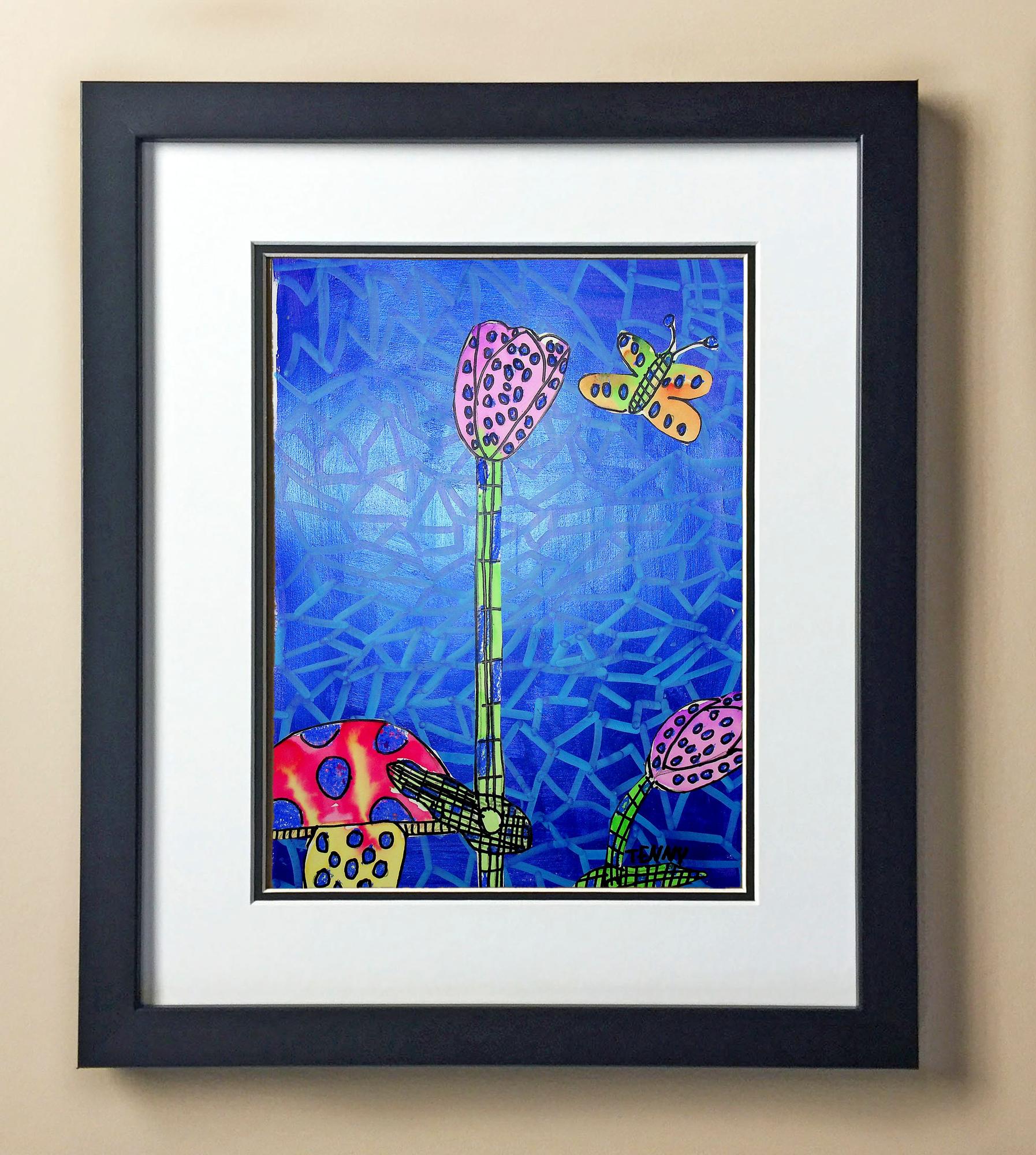 Included with the purchase is the Students Artwork, Frame, double matboard, shatter proof plexiglass, and a ready to hang backerboard with turnbuttons
