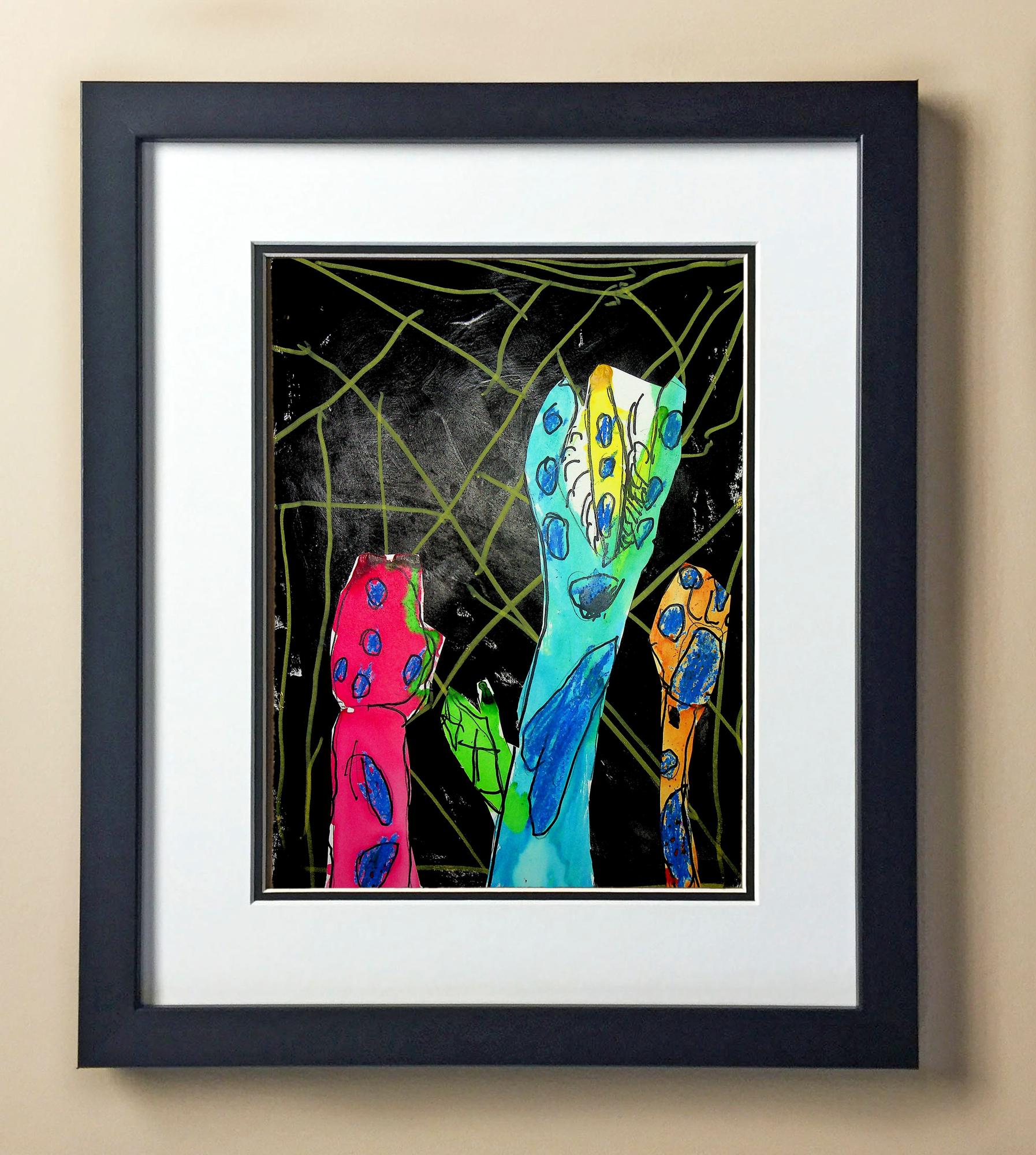 Included with the purchase is the Students Artwork, Frame, double matboard, shatter proof plexiglass, and a ready to hang backerboard with turnbuttons