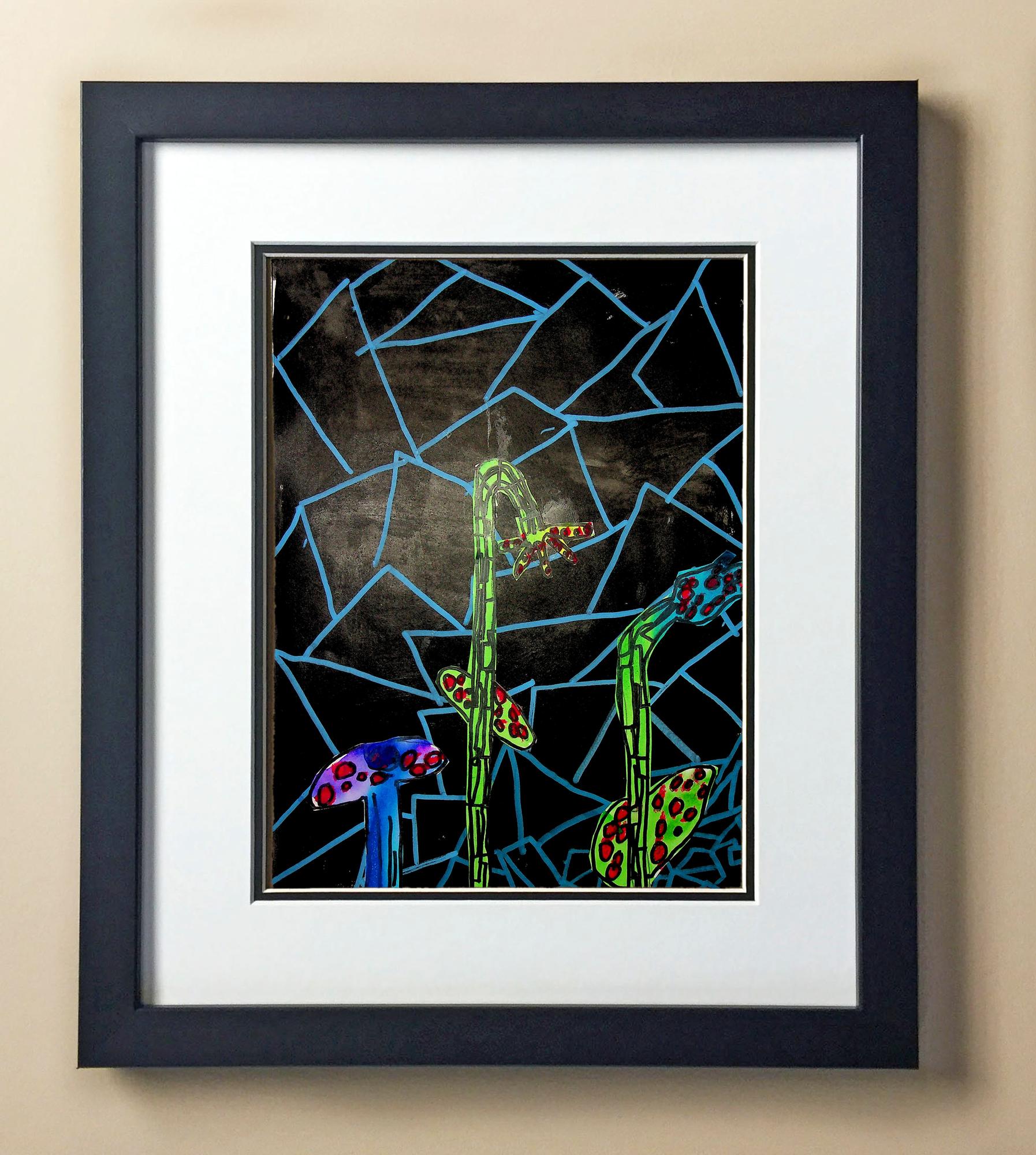 Included with the purchase is the Students Artwork, Frame, double matboard, shatter proof plexiglass, and a ready to hang backerboard with turnbuttons