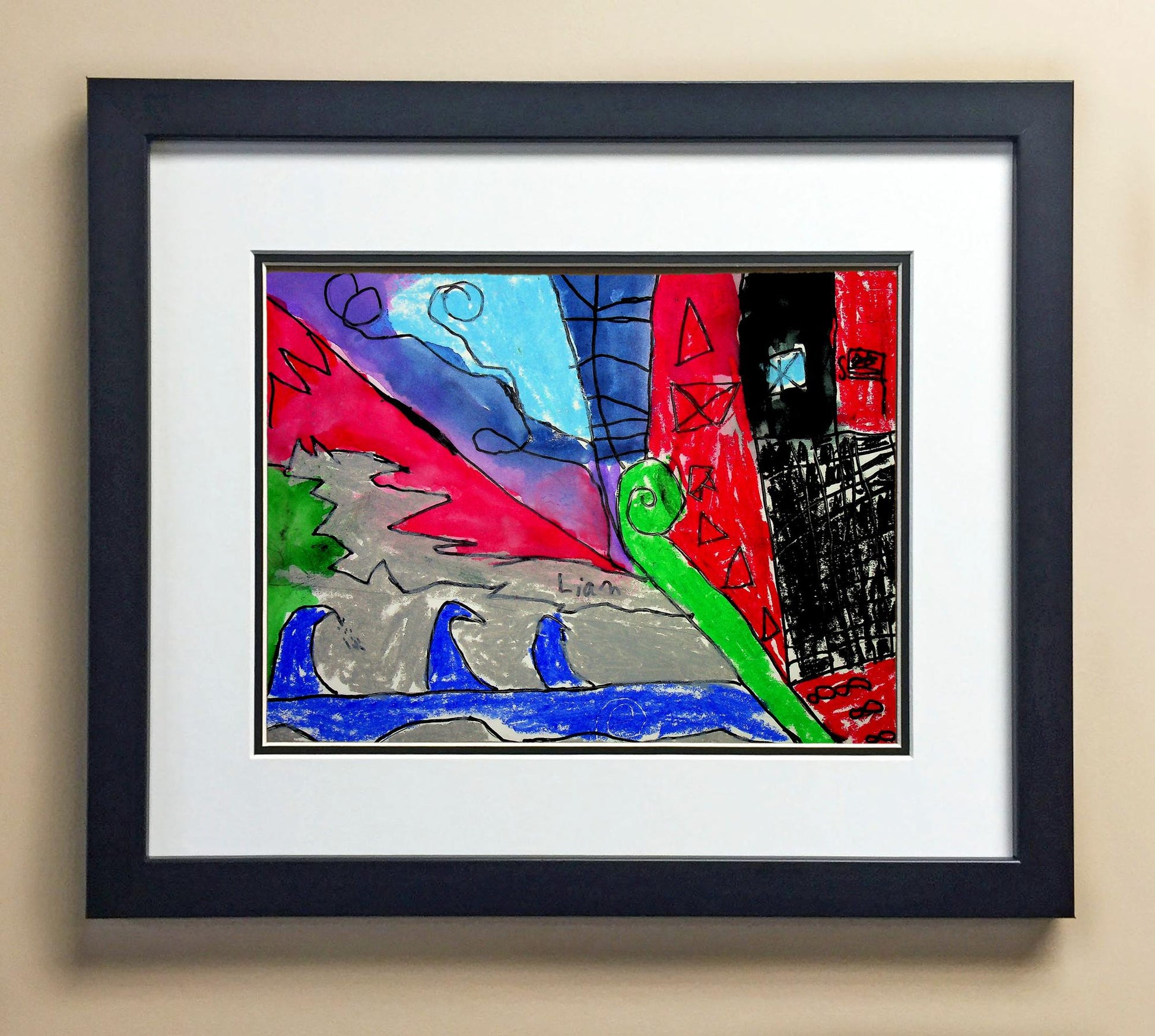 Included with the purchase is the Students Artwork, Frame, double matboard, shatter proof plexiglass, and a ready to hang backerboard with turnbuttons