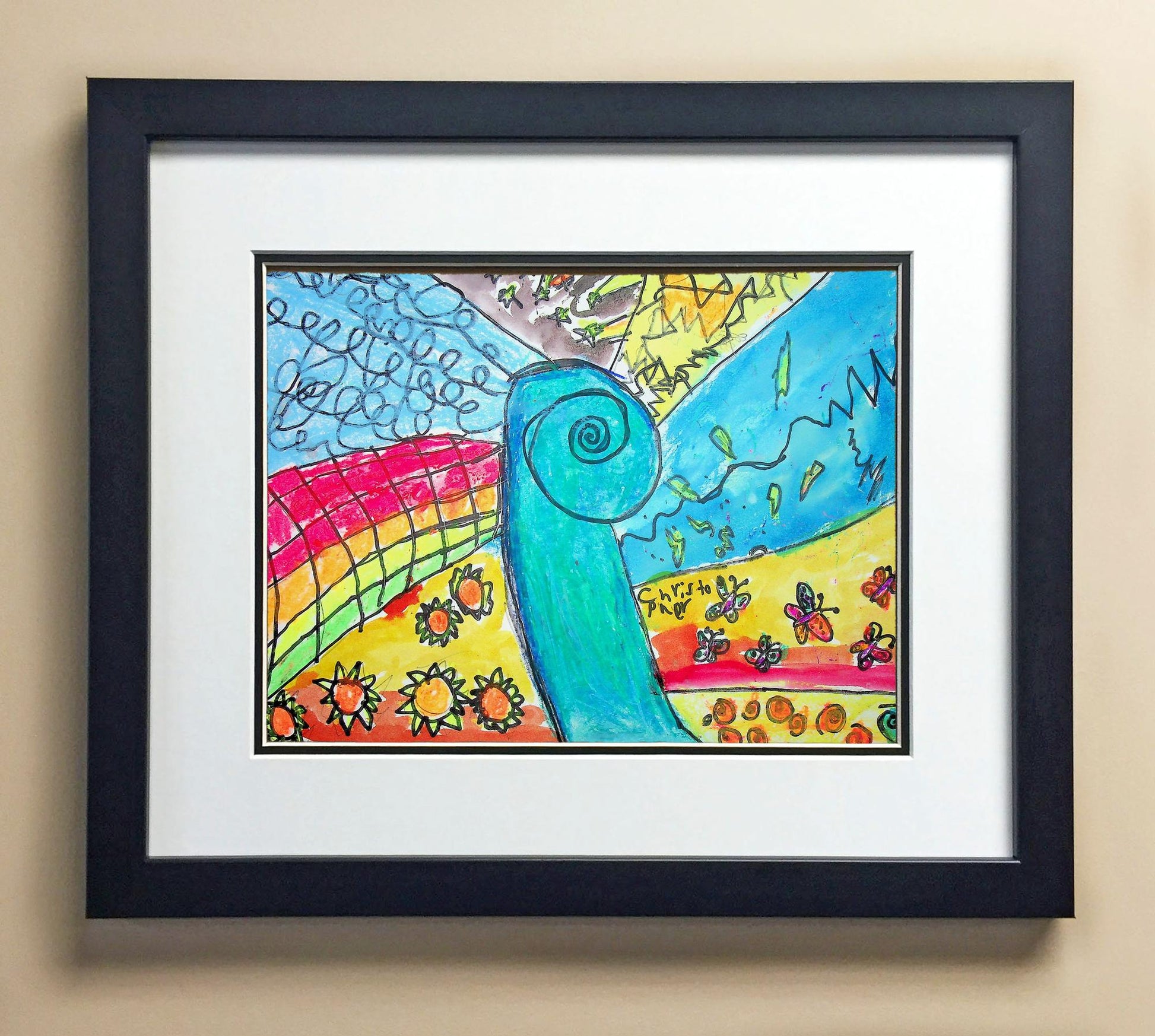 Included with the purchase is the Students Artwork, Frame, double matboard, shatter proof plexiglass, and a ready to hang backerboard with turnbuttons