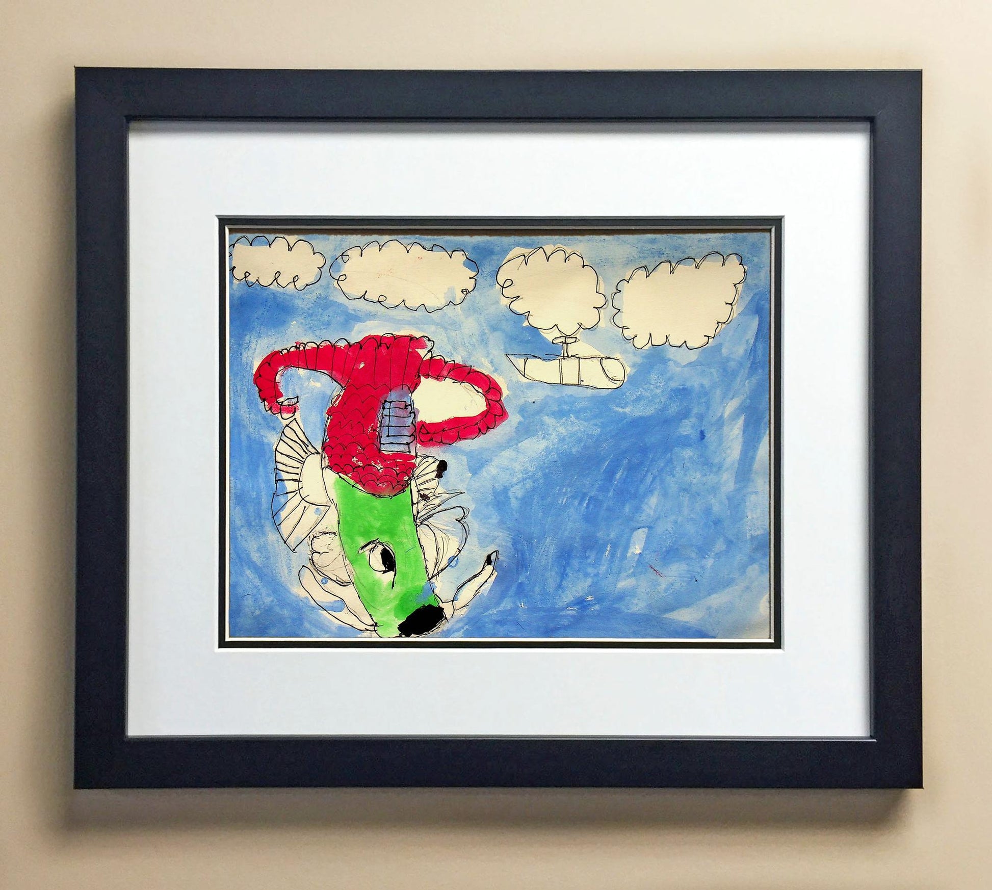 Included with the purchase is the Students Artwork, Frame, double matboard, shatter proof plexiglass, and a ready to hang backerboard with turnbuttons