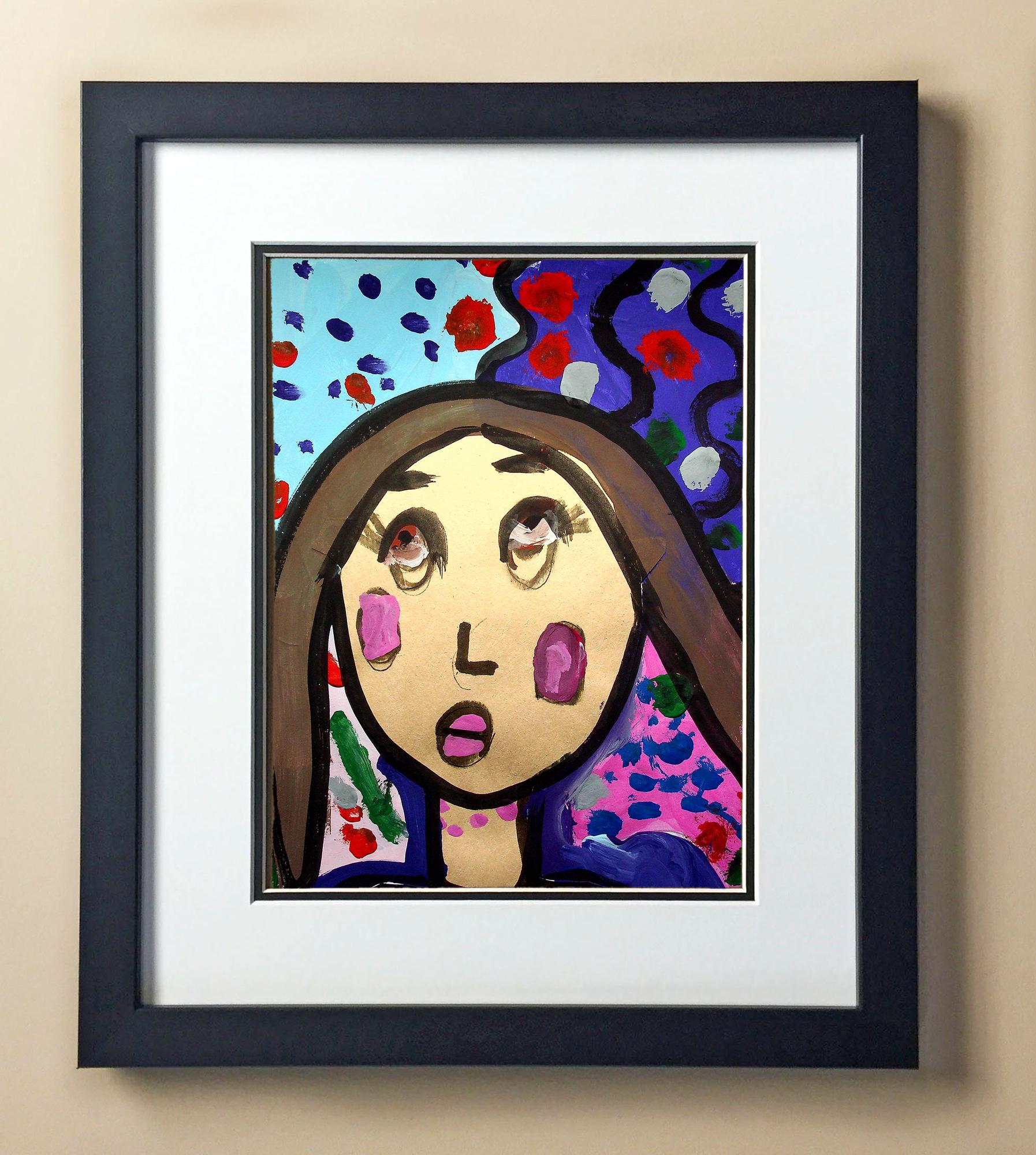 Included with the purchase is the Students Artwork, Frame, double matboard, shatter proof plexiglass, and a ready to hang backerboard with turnbuttons