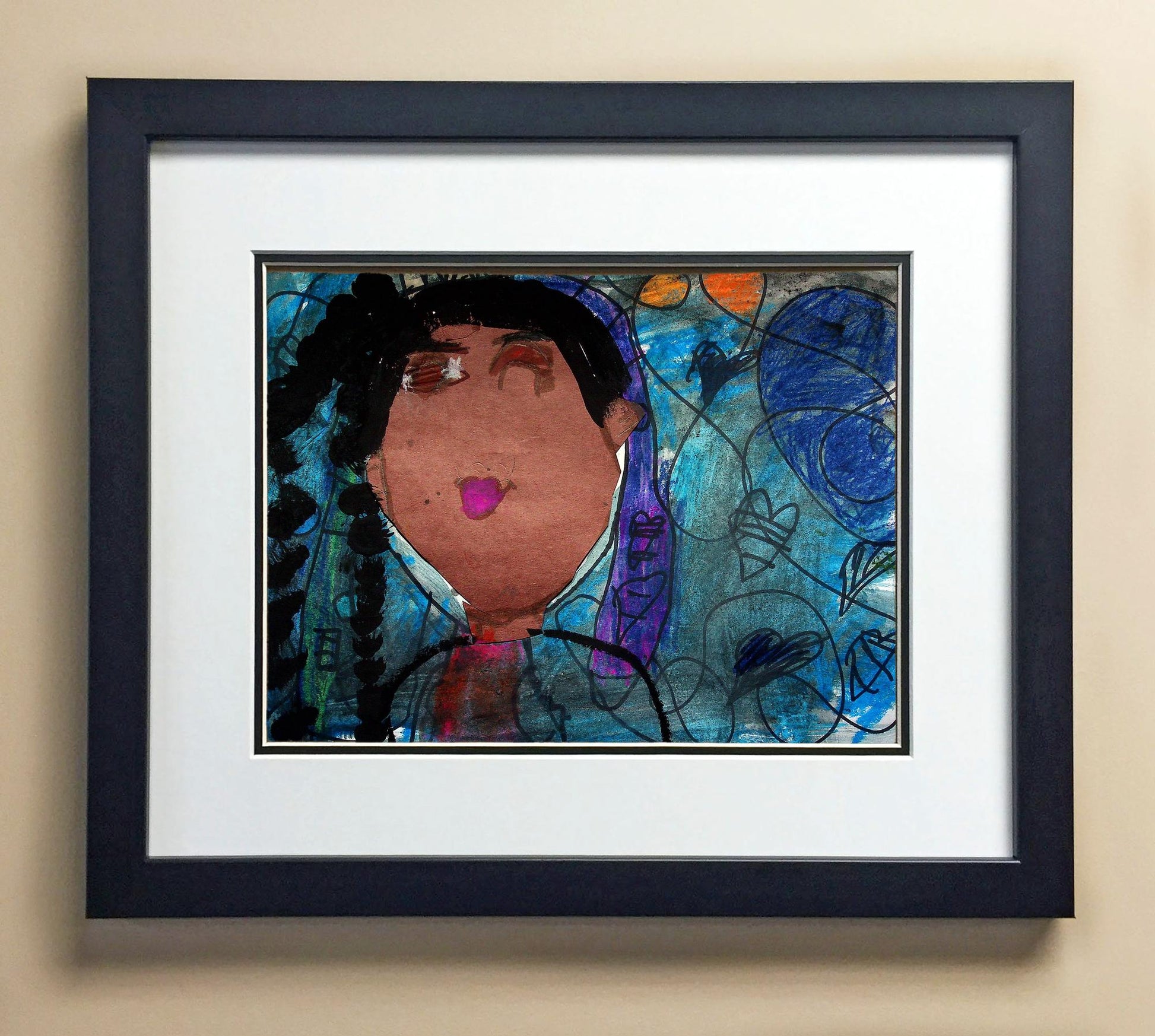 Included with the purchase is the Students Artwork, Frame, double matboard, shatter proof plexiglass, and a ready to hang backerboard with turnbuttons