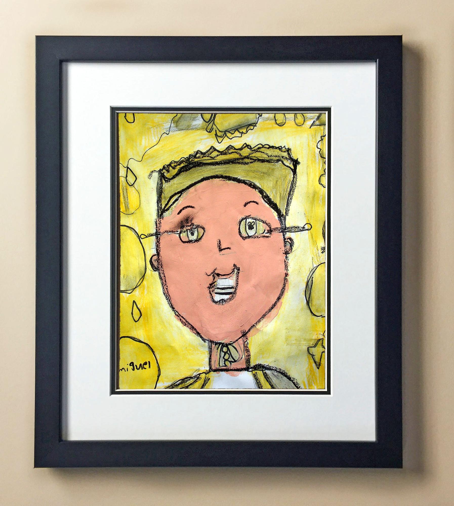 Included with the purchase is the Students Artwork, Frame, double matboard, shatter proof plexiglass, and a ready to hang backerboard with turnbuttons